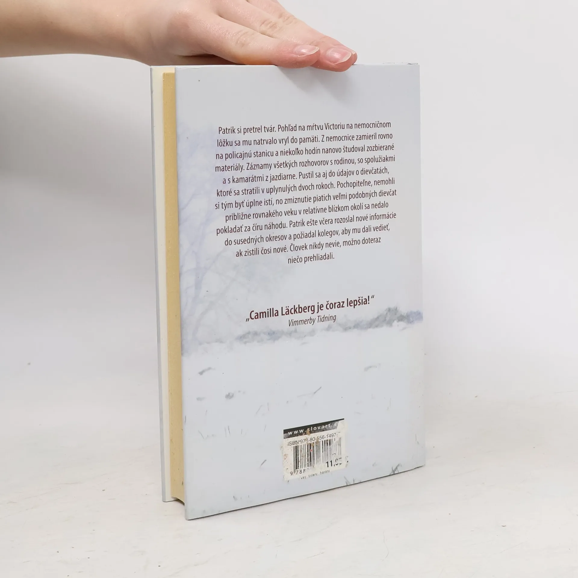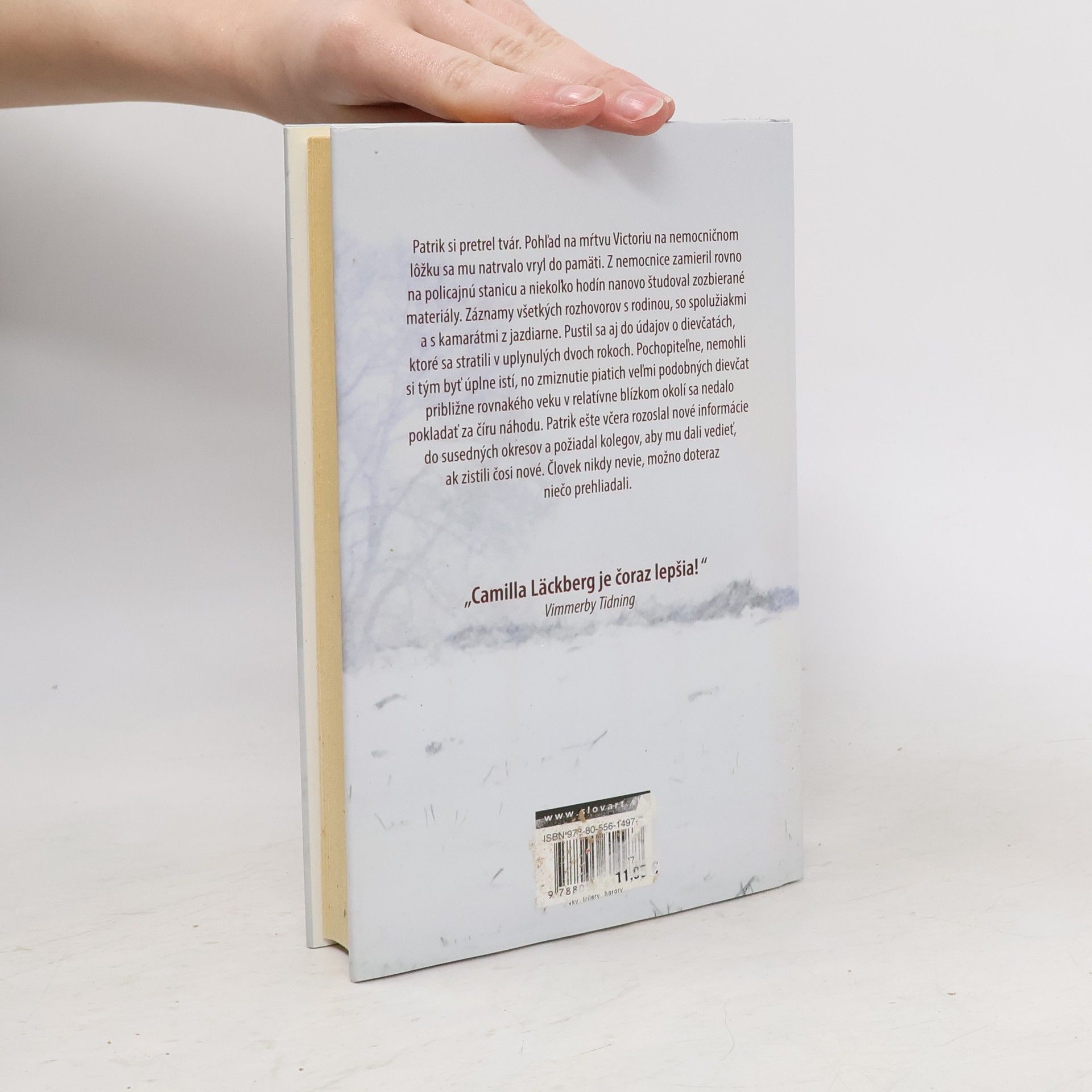 Camilla Läckberg vyštudovala ekonómiu a spočiatku v tomto odbore pracovala. Vždy sa však túžila stať spisovateľkou a dnes sa radí medzi najúspešnejšie švédske autorky krimi románov. Je január a Fjällbacku drží v zovretí tuhý mráz. Cez zasnežený les sa k hradskej potáca polonahé dievča. Na ceste sa však ako blesk z jasného neba vynorí auto a šofér nestíha zabrzdiť. Keď Patrik Hedström a jeho kolegovia dostanú správu o nešťastí, dievča je už identifikované. Zmizlo pred štyrmi mesiacmi cestou z tamojšej jazdeckej školy a odvtedy ho nikto nevidel. Podľa výsledkov pitvy bola dievčina vystavená mučeniu, a ak polícia prípad rýchlo neobjasní, hrozí, že podobný osud čaká aj iné mladé ženy. Zdroj: slovart.sk