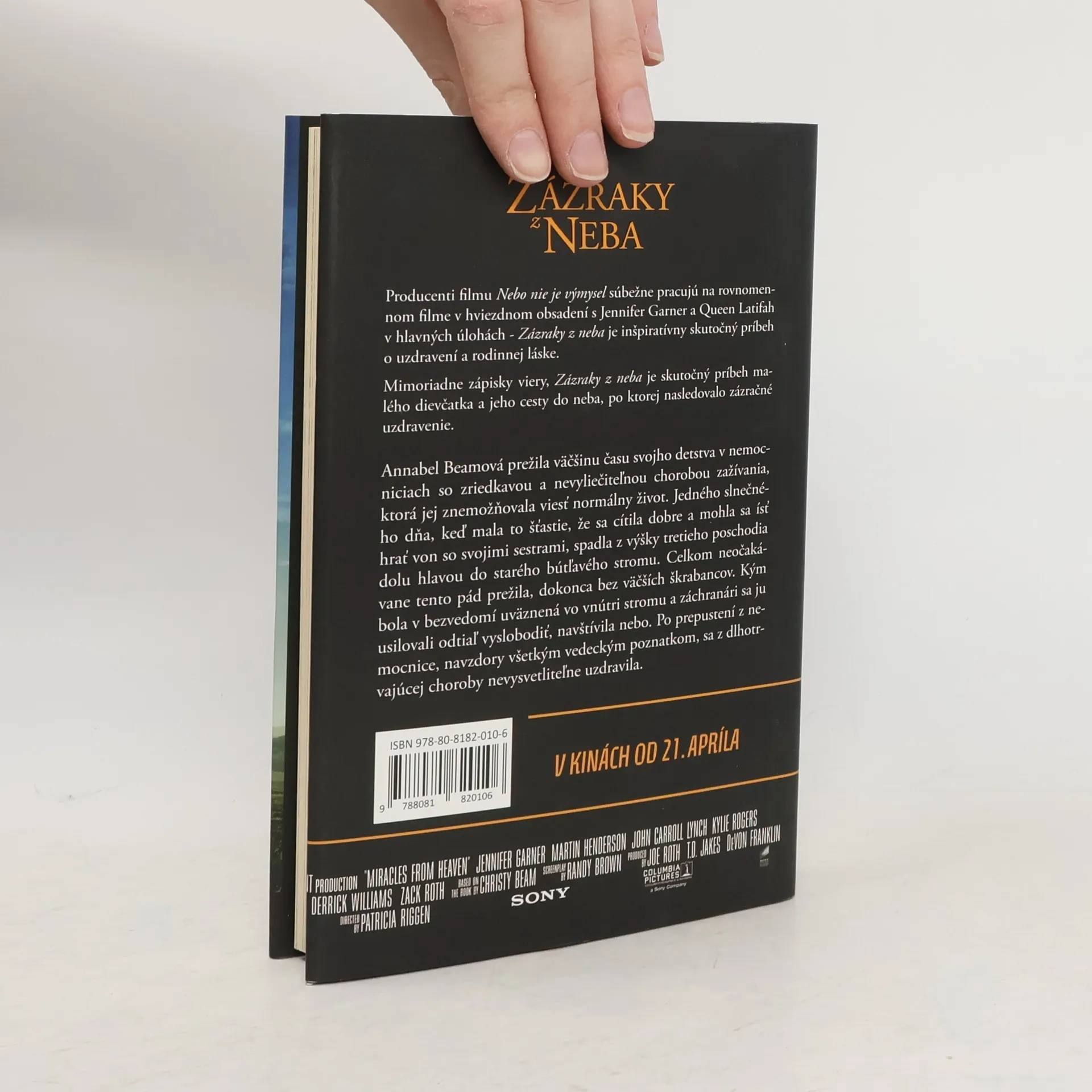 Annabel Beamová prežila väčšinu času svojho detstva v nemocniciach so zriedkavou a nevyliečiteľnou chorobou zažívania, ktorá jej znemožňovala viesť normálny život. Jedného slnečného dňa, keď mala to šťastie, že sa cítila dobre a mohla sa ísť hrať von so svojimi sestrami, spadla z výšky tretieho poschodia dolu hlavou do starého bútľavého stromu. Celkom neočakávane tento pád prežila, dokonca bez väčších škrabancov. Kým bola v bezvedomí uväznená vo vnútri stromu a záchranári sa ju usilovali odtiaľ vyslobodiť, navštívila nebo. Po prepustení z nemocnice, navzdory všetkým vedeckým poznatkom, sa z dlhotrvajúcej choroby nevysvetliteľne uzdravila. Producenti filmu Nebo nie je výmysel súbežne pracujú na rovnomennom filme v hviezdnom obsadení s Jennifer Garner a Queen Latifah v hlavných úlohách - Zázraky z neba je inšpiratívny skutočný príbeh o uzdravení a rodinnej láske.