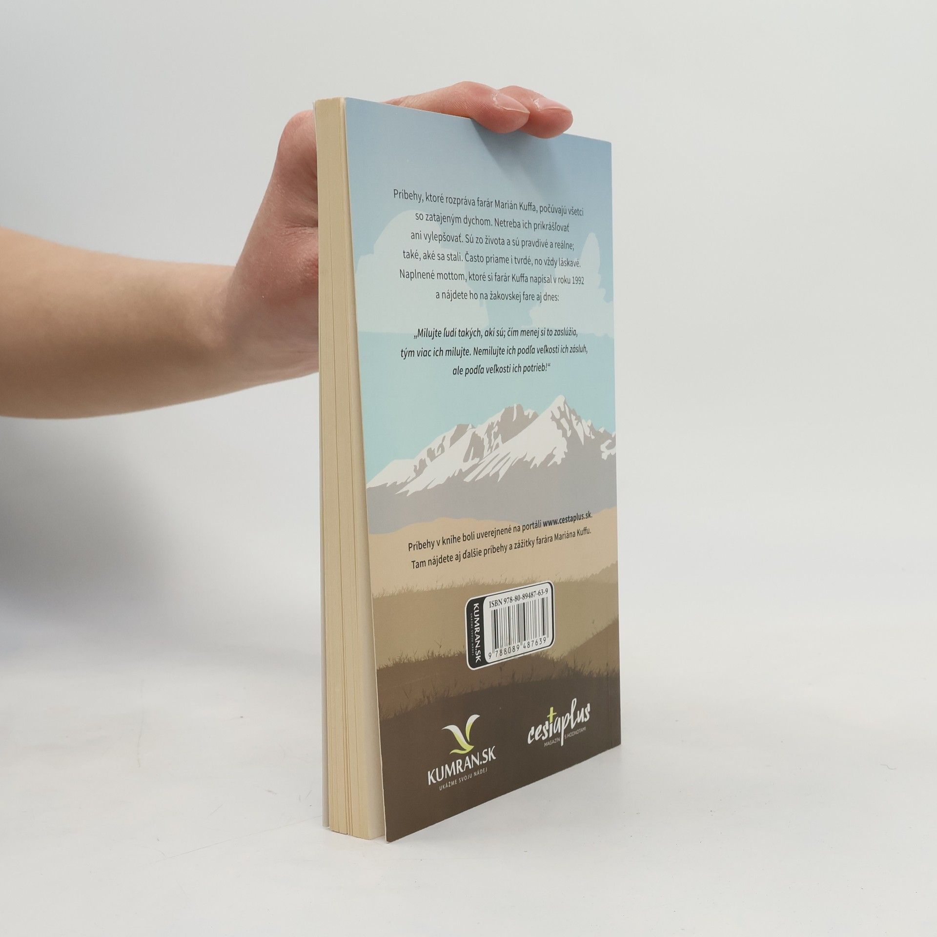 alebo V nebi nájdeš prostitútky, vrahov aj zlodejov Príbehy, ktoré rozpráva farár Marián Kuffa, počúvajú všetci so zatajeným dychom. Netreba ich prikrášľovať ani vylepšovať. Sú zo života a sú pravdivé a reálne; také, aké sa stali. Často priame i tvrdé, no vždy láskavé. Naplnené mottom, ktoré si farár Kuffa napísal v roku 1992 a nájdete ho na žakovskej fare aj dnes: „Milujte ľudí takých, akí sú; čím menej si to zaslúžia, tým viac ich milujte. Nemilujte ich podľa veľkosti ich zásluh, ale podľa veľkosti ich potrieb!“