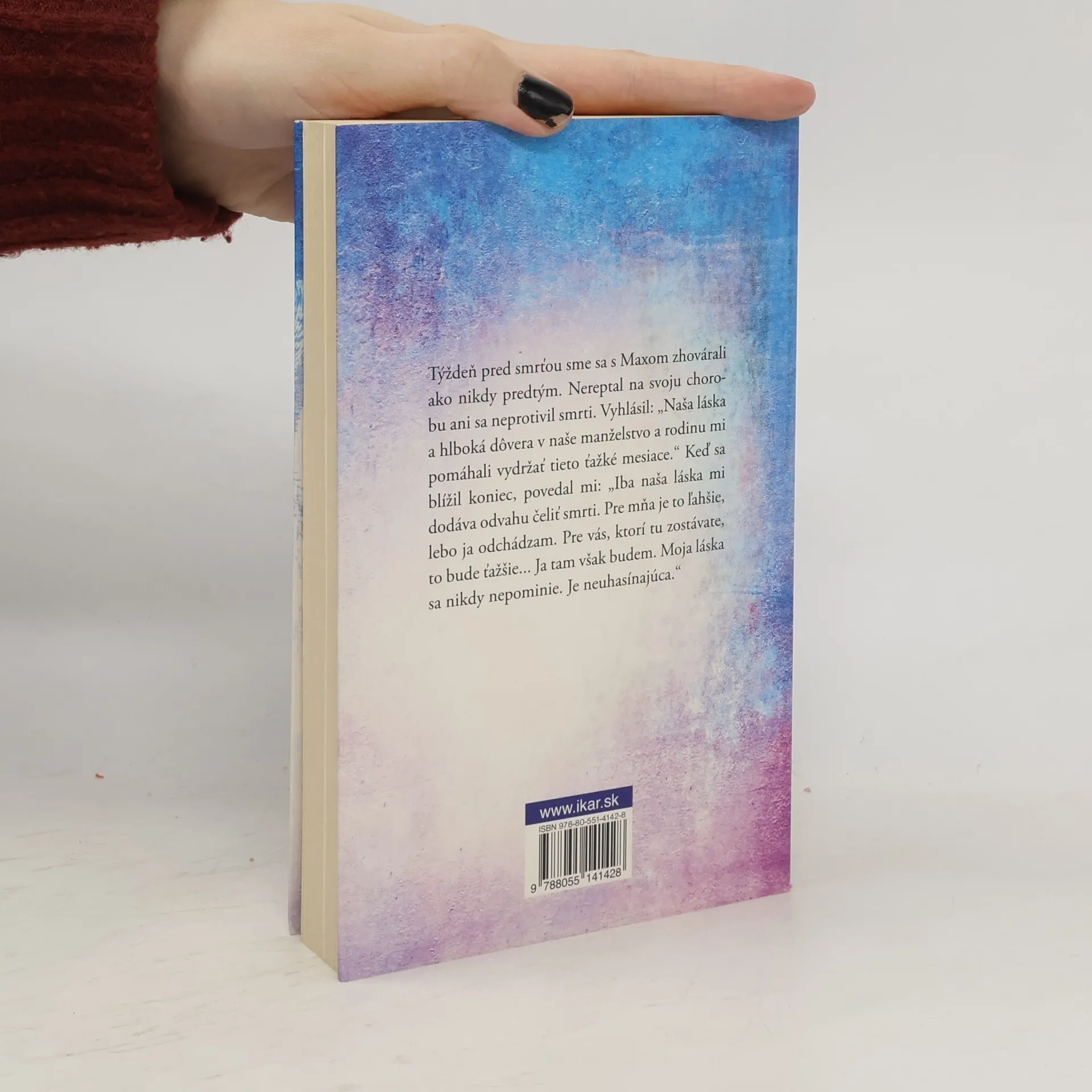 Neuveriteľne vierohodný príbeh o živote po živote. Skeptička sa snaží zosúladiť to, čo vie, s tým, čo vidí. Príbeh lásky. V roku 2004 Max Besler, manžel Janis Heaphy Durhamovej, zomrel na rakovinu pažeráka vo veku 56 rokov. V čase trúchlenia sa Heaphy Durhamová začala stretávať s fenoménmi, aké nikdy nezažila: s blikajúcimi svetlami, otvárajúcimi sa a zatvárajúcimi sa dverami. Hodinové ručičky zastali na 12.44, čo bol presný čas Maxovej smrti. Potom sa však udialo niečo alarmujúce, čo nadobro zmenilo jej život. Na prvé výročie Maxovej smrti sa na kúpeľňovom zrkadle z ničoho nič objavil odtlačok ruky z poprašku. Je to neuveriteľné, ale podobné obrazce sa objavili aj na druhé a tretie výročie Maxovej smrti. Bolo jasné, že ide o niečo nadprirodzené. Tak sa začala cesta Heaphy Durhamovej vedúca k transformácii jej duchovnosti, ktorá navždy zmenila jej spôsob nazerania na realitu. V jej priebehu sa autorka rozprávala s vedcami a s ľuďmi praktizujúcimi duchovný život. Objavila, že hranica medzi týmto a oným svetom nie je vôbec pevná a že tieto dva svety môže premostiť láska.