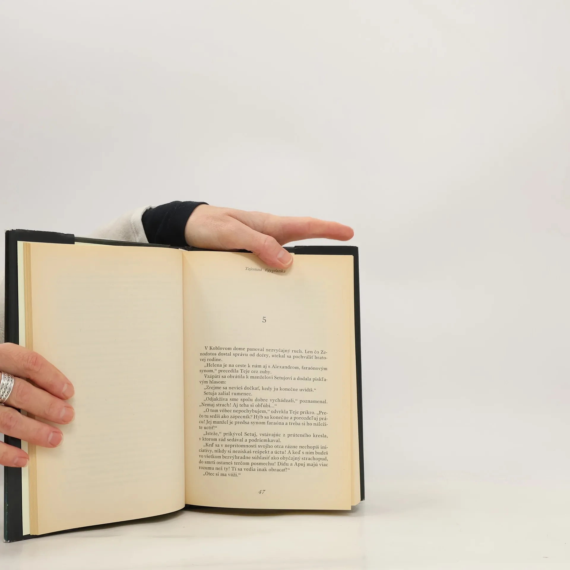 Alexandros, syn faraóna Ptolemaia II. Sotéra, cestou do Vesetu len zázrakom unikne smrti. V rodine Heleninho strýka Kobla dochádza k záhadným vraždám a zmiznutiam. Kto sa pokúša siahnuť na život mladému mužovi a jeho blízkym? A čo zatajuje Koblova nová spoločníčka, krásna a rozmarná Egypťanka? V napínavom románe s detektívnou zápletkou, odohrávajúcom sa v treťom storočí pred naším letopočtom, autorka zavedie čitateľa z veľkolepej Alexandrie do Údolia kráľov a kráľovien, kde pretrvávajú stáročné egyptské tradície a povery.
