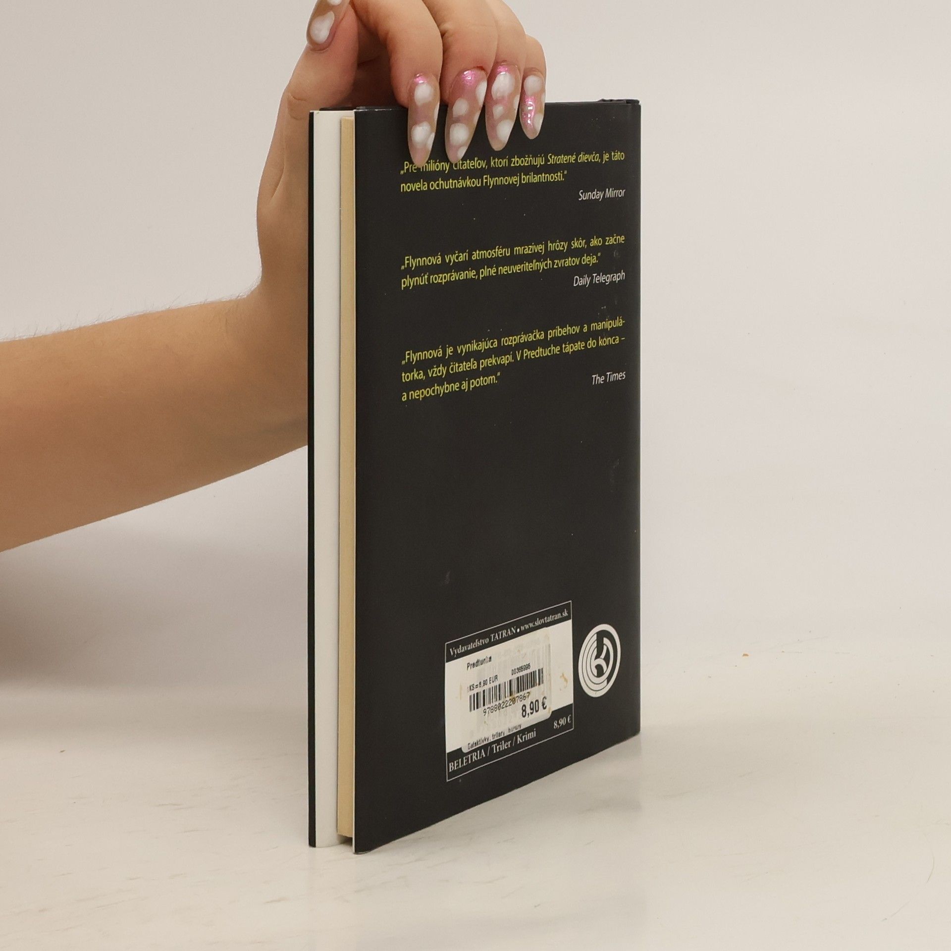 Za poviedku Predtucha získala Gyllian Flynnová Cenu Edgara Allana Poea a navyše ju vyhlásili za najlepšiu poviedku roku 2015. Napísala ju na požiadanie Georgea R.R. Martina do jeho antológie Podvodníci. To potvrdilo, že Gyllian Flynnová bezpochyby patrí k osvedčeným a zároveň k najsvojráznejším predstaviteľom modernej americkej prózy. Mladá Nerdy to už v detstve mala veľmi ťažké, so svojou matkou chodila po žobraní. Ale vie sa obracať v živote, živí sa sexuálnymi službami a jasnovidectvom. Pokladá sa za skúsenú pozorovateľku a znalkyňu ľudského správania. Až kým za ňou nepríde Susan Burkeová, vystrašená a presvedčená, že jej viktoriánsky dom a nevlastného syna posadol zlý duch. Nerdy jej sľúbi, že bude navštevovať jej honosné sídlo, aby odtiaľ vypudila nedobré sily. Ženie ju najmä vidina balíka peňazí. Do mátožnej atmosféry v dome podozrivo zapadá Miles, Susanin nevlastný syn s agresívnymi sklonmi a zvrátenou obrazotvornosťou. Zakrátko sa medzi chlapcom, jeho nevlastnou matkou a rozprávačkou príbehu rozpúta neľútostný zápas.