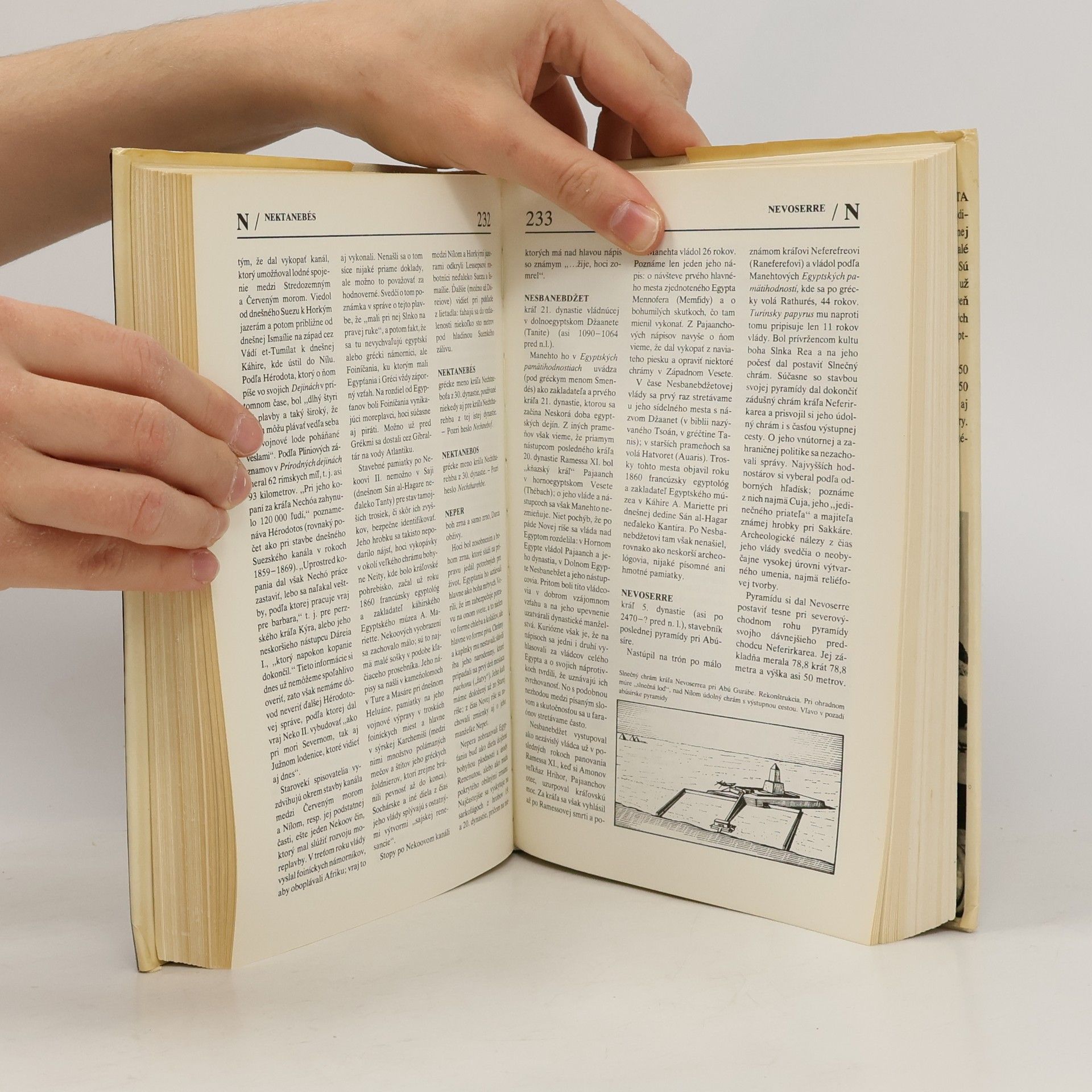 Encyklopédia, kde rýchlo a spoľahlivo nájdete "kto bol kto" v starom Egypte, kedy tam vládol ten či onen panovník, akú mal funkciu ten či onen boh, kedy bola objavená tá či oná pamiatka. Vydanie prvé. Cena knihy v čase vydania: 70.- Kčs.