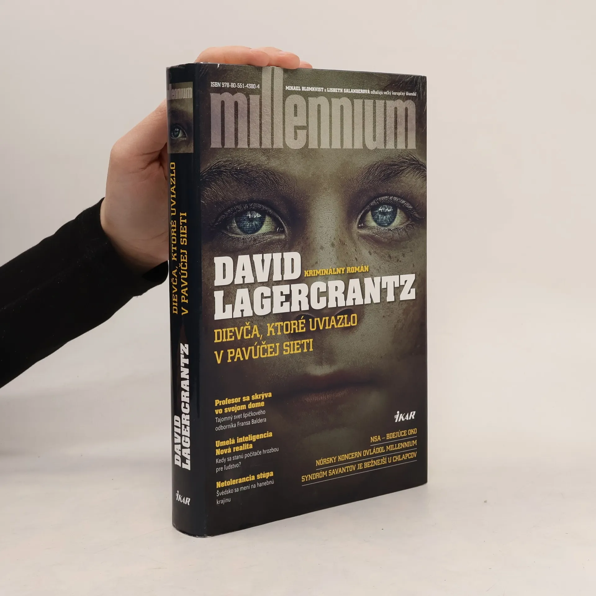 Časopis Millennium má nových vlastníkov. Zlé jazyky tvrdia, že éra Mikaela Blomkvista sa skončila, aj sám Blomkvist zvažuje zmenu zamestnania. Lisbeth Salanderová sa zdanlivo bezdôvodne zapojí do hackerského útoku. Berie na seba riziká, ktorým sa doteraz vyhýbala. Toto sa na ňu nepodobá. Špičkový odborník na výskum umelej inteligencie profesor Frans Balder zavolá uprostred noci Blomkvistovi, aby ho informoval, že disponuje šokujúcimi informáciami o amerických tajných službách. Prezradí mu, že bol v kontakte s mladou geniálnou hackerkou. Blomkvist tuší, o koho ide. V Blomkvistovi skrsne nádej na senzačné odhalenie, ktoré on aj časopis Millennium zúfalo potrebujú. Ako zvyčajne, Lisbeth Salanderová sleduje svoje vlastné ciele. Nadišiel čas, aby sa ich životné cesty opäť stretli. Román Dievča, ktoré uviazlo v pavúčej sieti z pera Davida Lagercrantza je štvrtým dielom fenomenálnej série Millennium Stiega Larssona, autora prvých troch častí (Muži, ktorí nenávidia ženy, Dievča, ktoré sa hralo s ohňom, Vzdušný zámok, ktorý vybuchol).