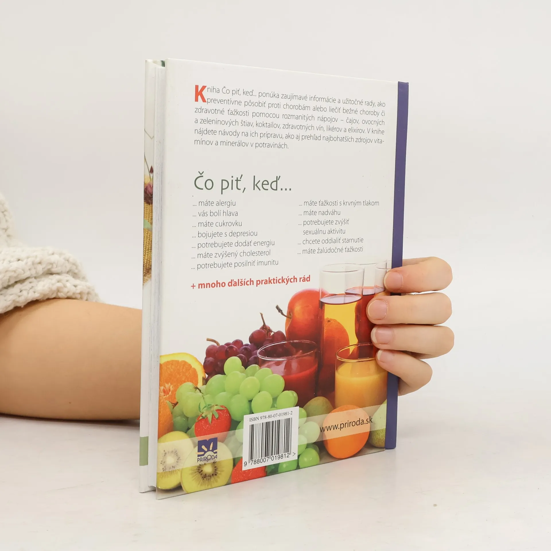 Kniha Čo piť, keď... ponúka zaujímavé informácie a užitočné rady, ako preventívne pôsobiť proti chorobám alebo liečiť bežné choroby či zdravotné ťažkosti pomocou rozmanitých nápojov - čajov, ovocných a zeleninových štiav, koktailov, zdravotných vín, likérov a elixírov. Tieto nápoje sú plné prospešných látok, ktoré vyživujú, posilňujú a pomáhajú liečiť telo i dušu. Majú schopnosť dodať vitalitu aj energiu, a dokonca predĺžiť život. Kniha ponúka informácie o viac ako stovke zdravotných problémov a chorôb, prehľadne zoradených podľa abecedy. V častiach, ktoré sa týkajú konkrétneho zdravotného problému, sa dozviete, ktoré nápoje s liečivým účinkom môžu ovplyvniť vývoj danej choroby. V závere knihy nájdete odporúčané bylinné čaje s návodmi na ich prípravu, ako aj prehľad najbohatších zdrojov vitamínov a minerálov v potravinách.