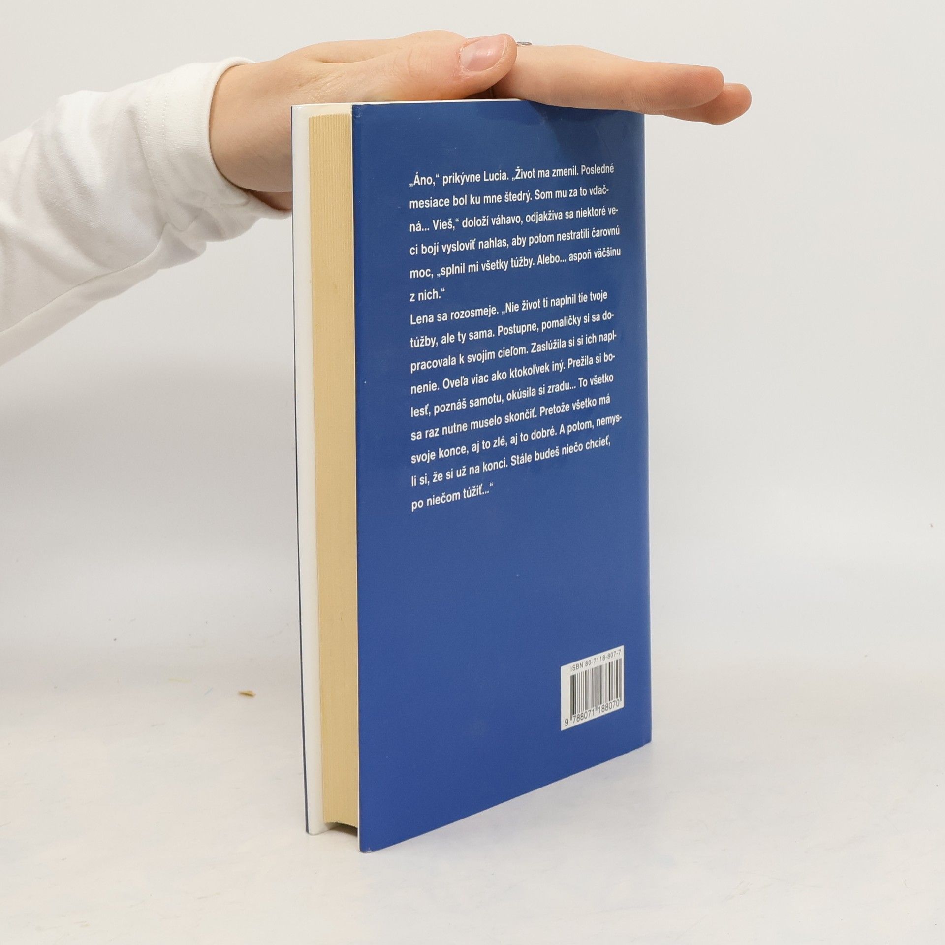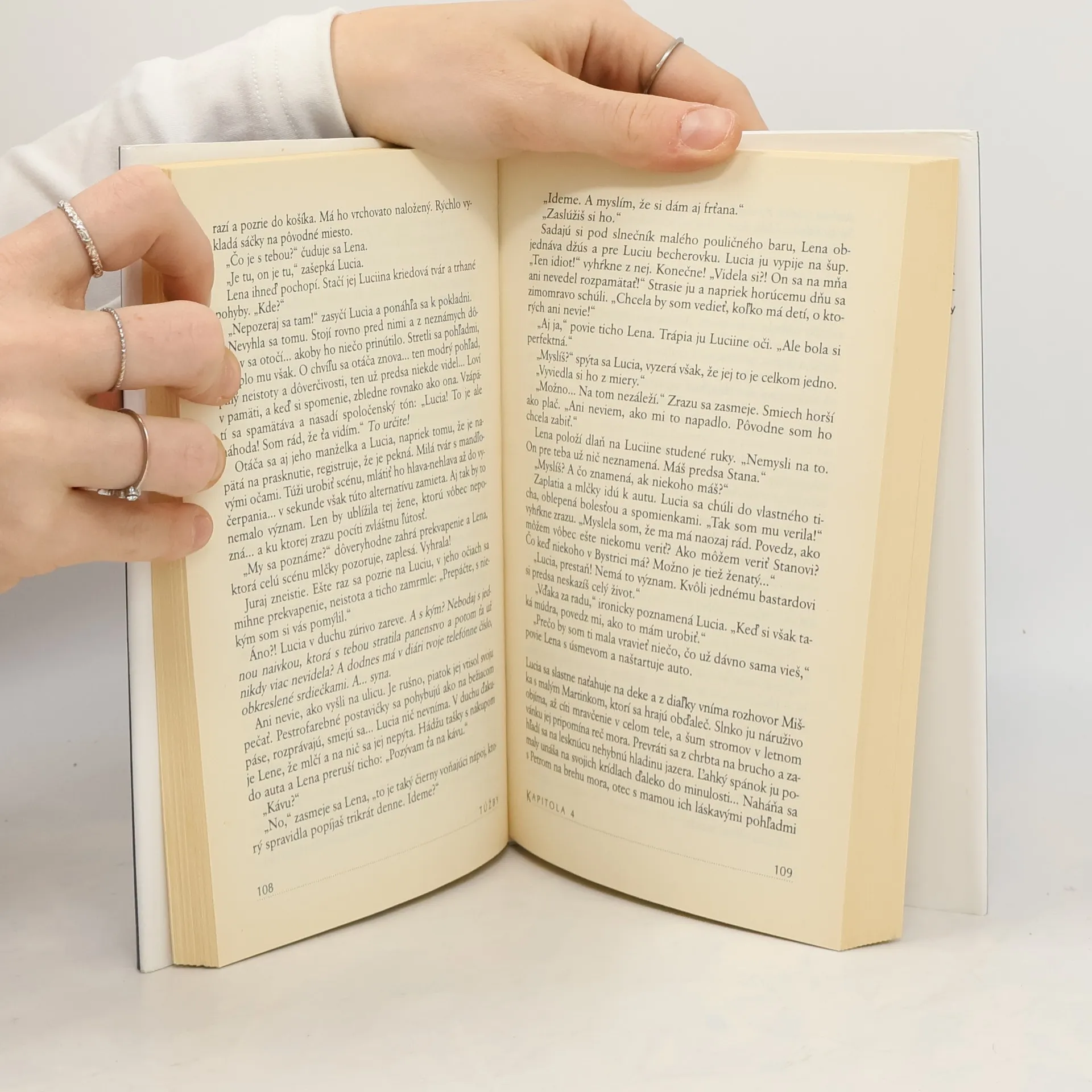 Lucia, hlavná hrdinka románu, je slobodná mamička, ktorej život v podobe neseriózneho partnera uštedril prvú krutú príučku. Hoci má radosť zo svojho synčeka, dobré vzťahy na pracovisku, doma trpí v područí despotickej matky, ktorá akoby jej nechcela dožičiť nijakú radosť zo života. Lucia je unavená z problémov všedných, jednotvárnych dní a už ani nedúfa, že by sa jej mohlo stať niečo pekné. Až jedného dňa odíde na lyžovačku a jej život sa celkom zmení...