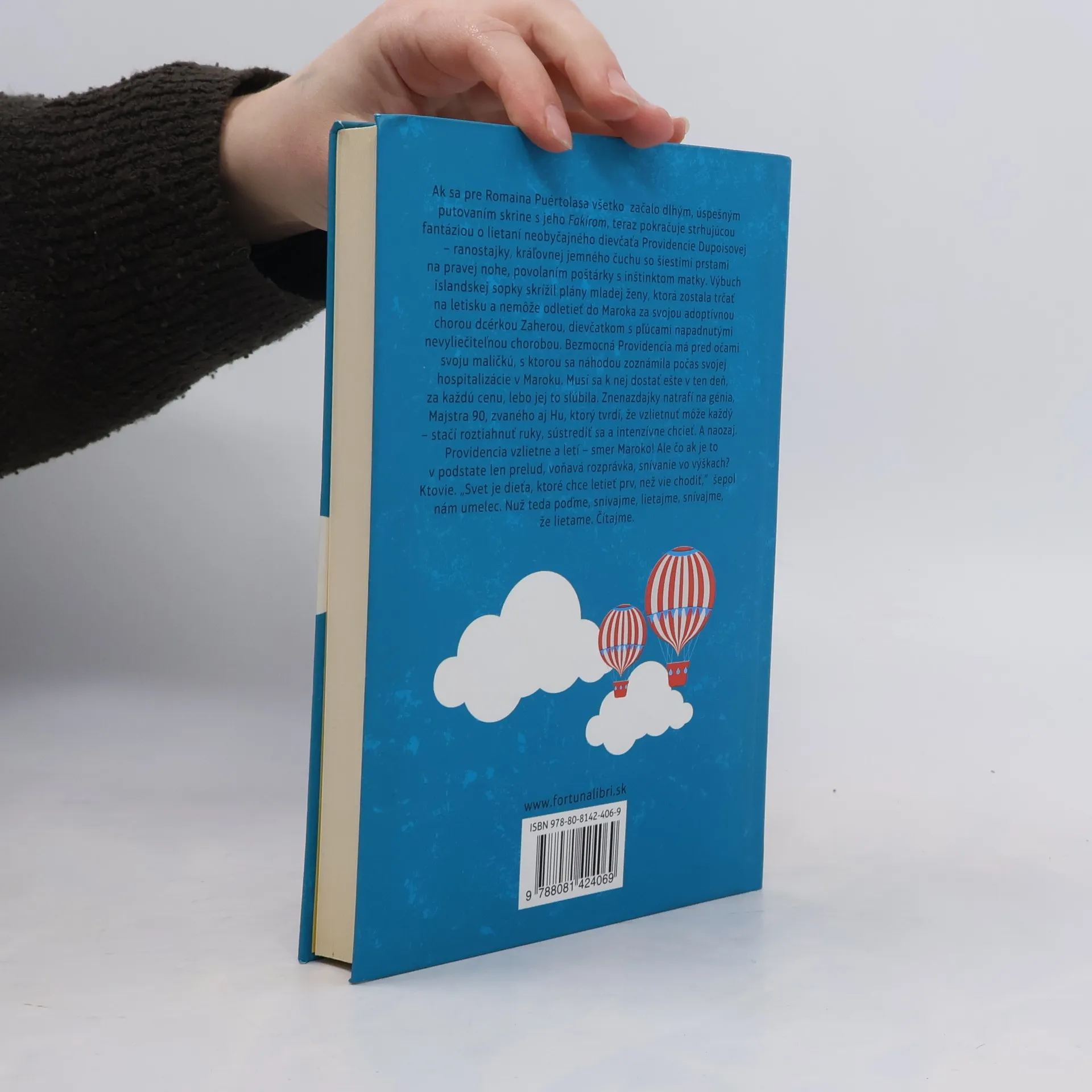 Opäť vzrušujúci príbeh obyčajných ľudí, ktorí zažívajú neobyčajné veci. Román je často prirovnávaný k Malému princovi... Ak sa pre Romaina Puértolasa všetko začalo dlhým, úspešným putovaním skrine s jeho Fakírom, teraz pokračuje strhujúcou fantáziou o lietaní neobyčajného dievčaťa Providencie Dupoisovej – ranostajky, kráľovnej jemného čuchu so šiestimi prstami na pravej nohe, povolaním poštárky s inštinktom matky. Výbuch islandskej sopky skrížil plány mladej ženy, ktorá zostala trčať na letisku a nemôže odletieť do Maroka za svojou adoptívnou chorou dcérkou Zaherou, dievčatkom s pľúcami napadnutými nevyliečiteľnou chorobou. Bezmocná Providencia má pred očami svoju maličkú, s ktorou sa náhodou zoznámila počas svojej hospitalizácie v Maroku. Musí sa k nej dostať ešte v ten deň, za každú cenu, lebo jej to sľúbila. Znenazdajky natrafí na génia, Majstra 90, zvaného aj Hu, ktorý tvrdí, že vzlietnuť môže každý – stačí roztiahnuť ruky, sústrediť sa a intenzívne chcieť. A naozaj. Providencia vzlietne a letí – smer Maroko! Ale čo ak je to v podstate len prelud, voňavá rozprávka, snívanie vo výškach? Ktovie. „Svet je dieťa, ktoré chce letieť prv, než vie chodiť,“ šepol nám umelec. Nuž teda poďme, snívajme, lietajme, snívajme, že lietame.