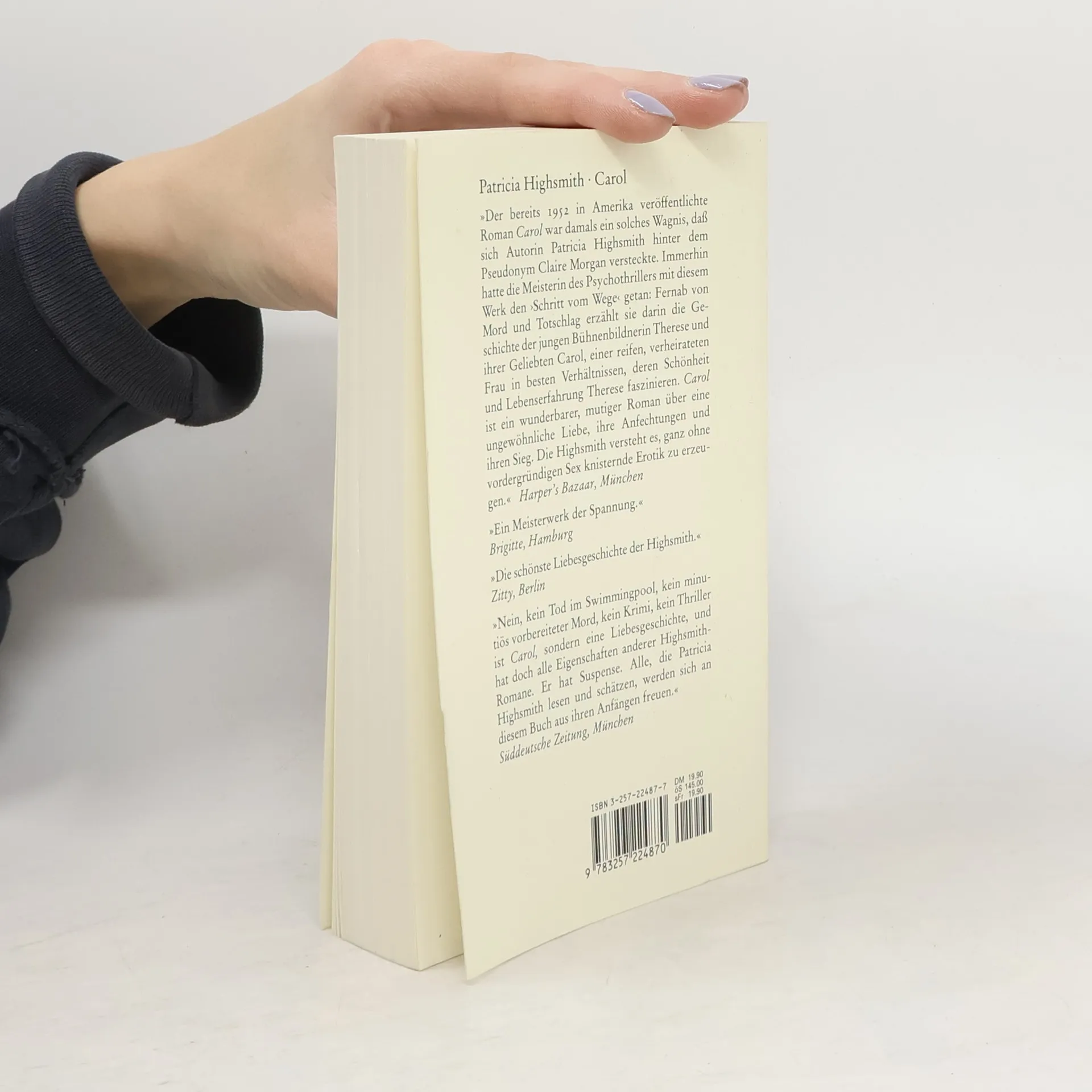 Eine ganz normale Geschichte, nur dass 1952, als der Kultroman einer lesbischen Liebe in McCarthys Amerika erstmals unter Pseudonym erschien, dort alles als verdächtig galt, was etwas anders war: Zwei Frauen lernen sich kennen und beschließen, eine lange Reise miteinander zu machen. Ein Privatdetektiv folgt ihnen, um Beweise für ihre erotische Beziehung zu sammeln. Die eine Frau reist ab, die andere bleibt grübelnd zurück. Irgendwann reist auch diese wieder heim. Dazwischen haben die beiden Tage und Kilometer hinter sich gebracht, um sich kennen- und liebenzulernen. Eine knisternde Amour fou. Ein moralisches Dilemma für die eine, das ihr, wie immer sie sich entscheidet, einen hohen Preis abfordert. Und eine Road-novel à la ›Thelma und Louise‹, mit dem Unterschied, dass Carol und Therese kein Verbrechen begangen haben außer dem, sich zu lieben. ›Salz und sein Preis‹ ist Patricia Highsmiths einziger Roman, der von erfüllter Liebe handelt, die als Glück empfunden wird und nicht als böser Wahn. Nie wieder schreibt die Autorin, die den Roman unter dem Eindruck einer persönlichen Begegnung begann, so sinnlich, so poetisch, so erotisch.
