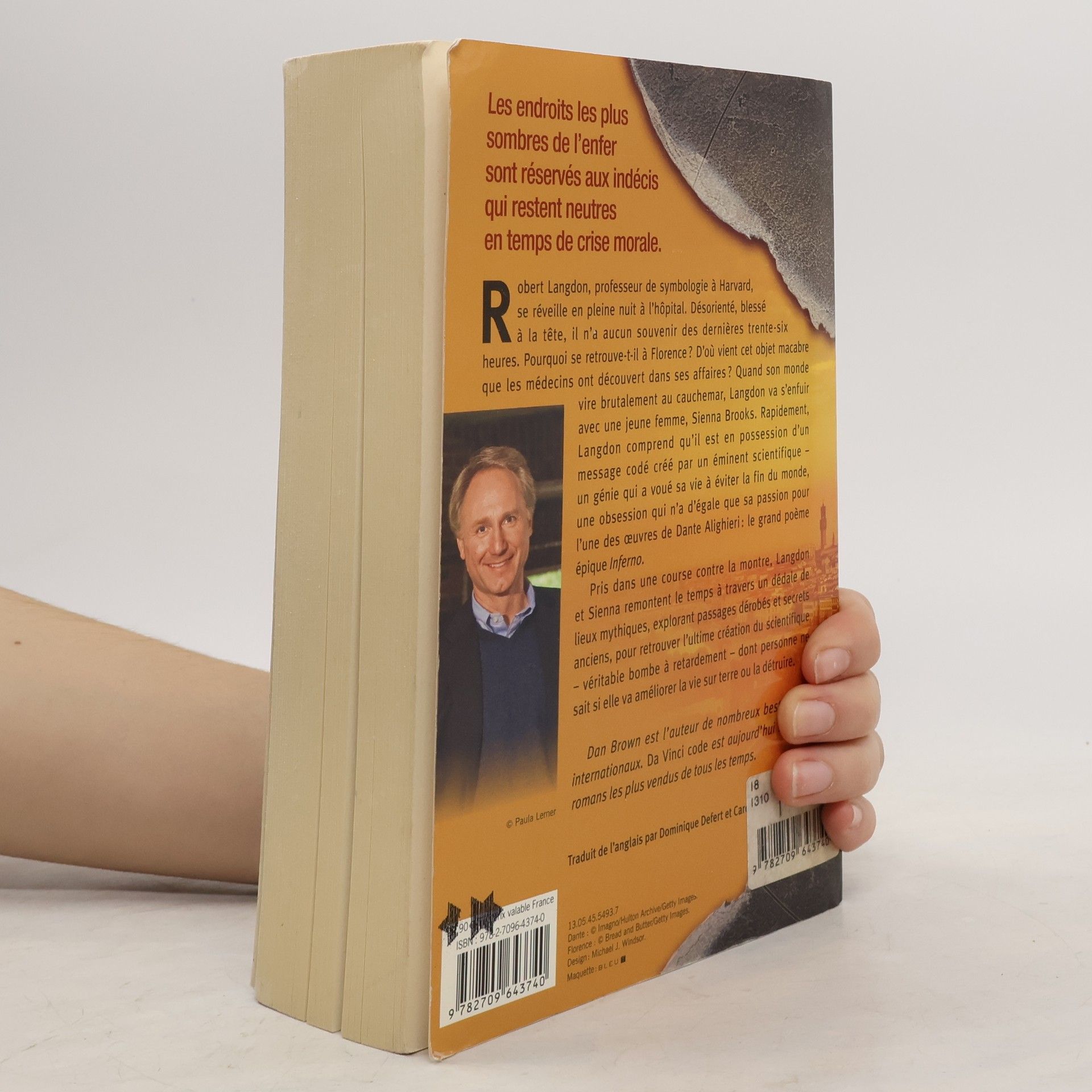 Robert Langdon, professeur de symbologie à Harvard, se réveille en pleine nuit à l'hôpital. Désorienté, blessé à la tête, il n'a aucun souvenir des dernières trente-six heures. Pourquoi se retrouve-t-il à Florence ? D'où vient cet objet macabre que les médecins ont découvert dans ses affaires ? Quand son monde vire brutalement au cauchemar, Langdon va s'enfuir avec une jeune femme, Sienna Brooks. Rapidement, Langdon comprend qu'il est en possession d'un message codé créé par un éminent scientifique - un génie qui a voué sa vie à éviter la fin du monde, une obsession qui n'a d'égale que sa passion pour l'une des oeuvres de Dante Alighieri: le grand poème épique Inferno. Pris dans une course contre la montre, Langdon et Sienna remontent le temps à travers un dédale de lieux mythiques, explorant passages dérobés et secrets anciens, pour retrouver l'ultime création du scientifique - véritable bombe à retardement - dont personne ne sait si elle va améliorer la vie sur terre ou la détruire.