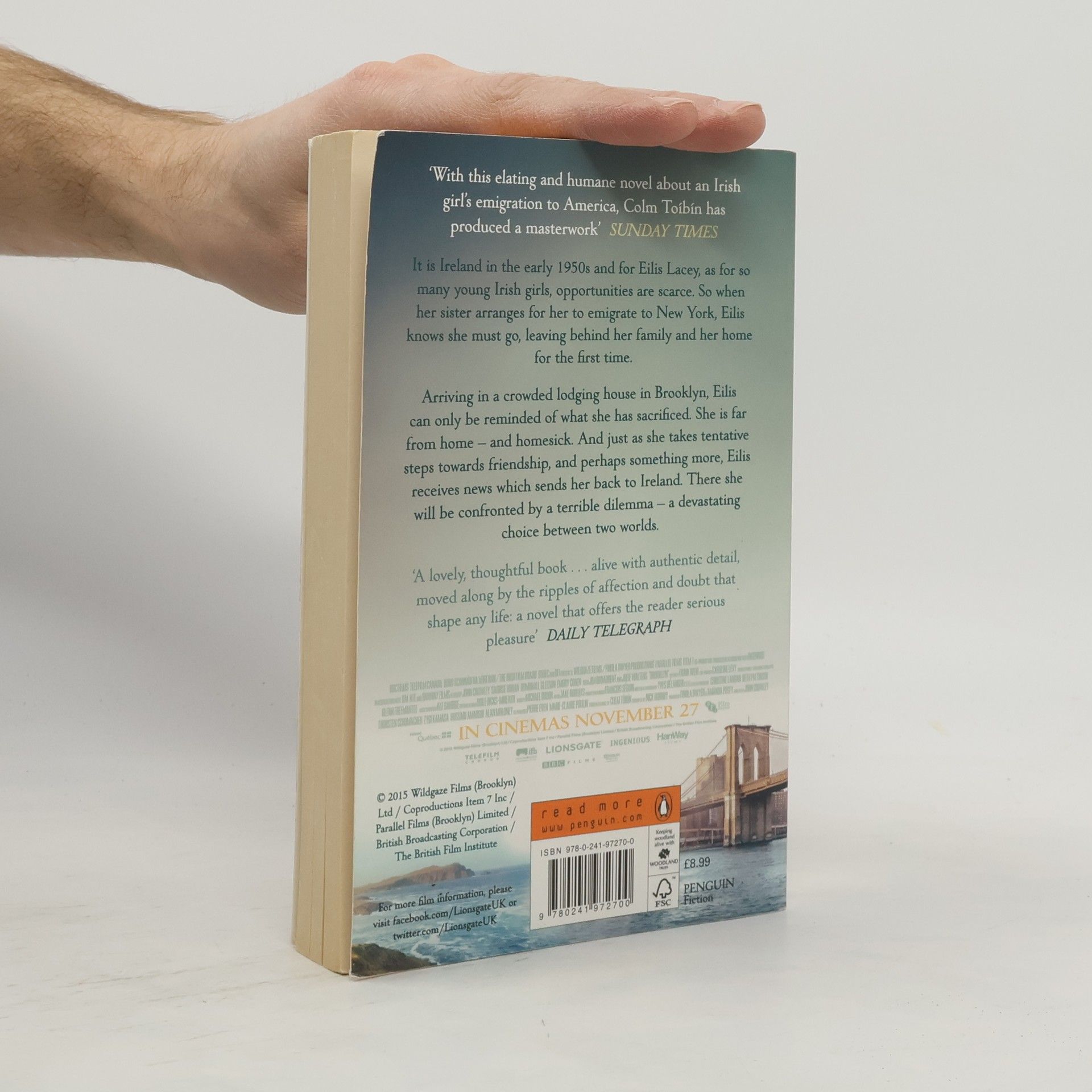 It is Ireland in the early 1950s and for Eilis Lacey, as for so many young Irish girls, opportunities are scarce. So when her sister arranges for her to emigrate to New York, Eilis knows she must go. Arriving in a crowded lodging house in Brooklyn, Eilis can only be reminded of what she has sacrificed. And just as she takes tentative steps towards friendship, and perhaps something more, Eilis receives news which sends her back to Ireland. There she will be confronted by a terrible dilemma - a devastating choice between duty and one great love.