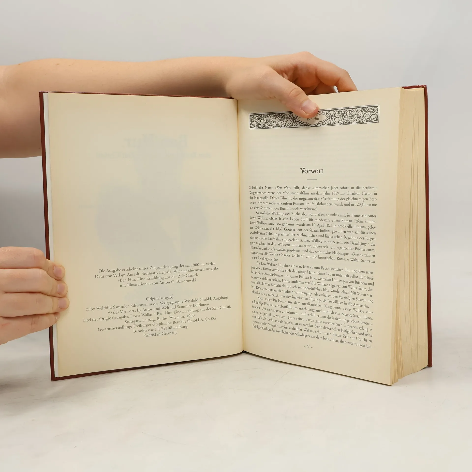 Als der römische Statthalter von Judäa bei seinem Einzug in Jerusalem von einem herabfallenden Ziegelstein lebensgefährlich verletzt wird, verurteilt man den jungen Judah Ben Hur wegen eines angeblichen Attentats, dessen sein einstiger Jugendfreund Messala ihn bezichtigt, zu lebenslangem Galeerendienst. Seine Mutter und seine Schwester werden ins Gefängnis geworfen. Als er einige Jahre später während einer Seeschlacht den Oberbefehlshaber der römischen Flotte vor dem Ertrinken rettet, schenkt dieser ihm die Freiheit. Ben Hur macht sich auf die Suche nach seiner Familie und seinem Widersacher, den er schließlich in einem dramatischen Zweikampf im Wagen-rennen herausfordert. Ben Hur ist eines der meistgelesenen Bücher der Welt. Es führt den Leser in die Zeit Christi und läßt ihn teilhaben am Schicksal des unrechtmäßig zum Galeerendienst verurteilten Judah Ben Hur und seiner Familie.