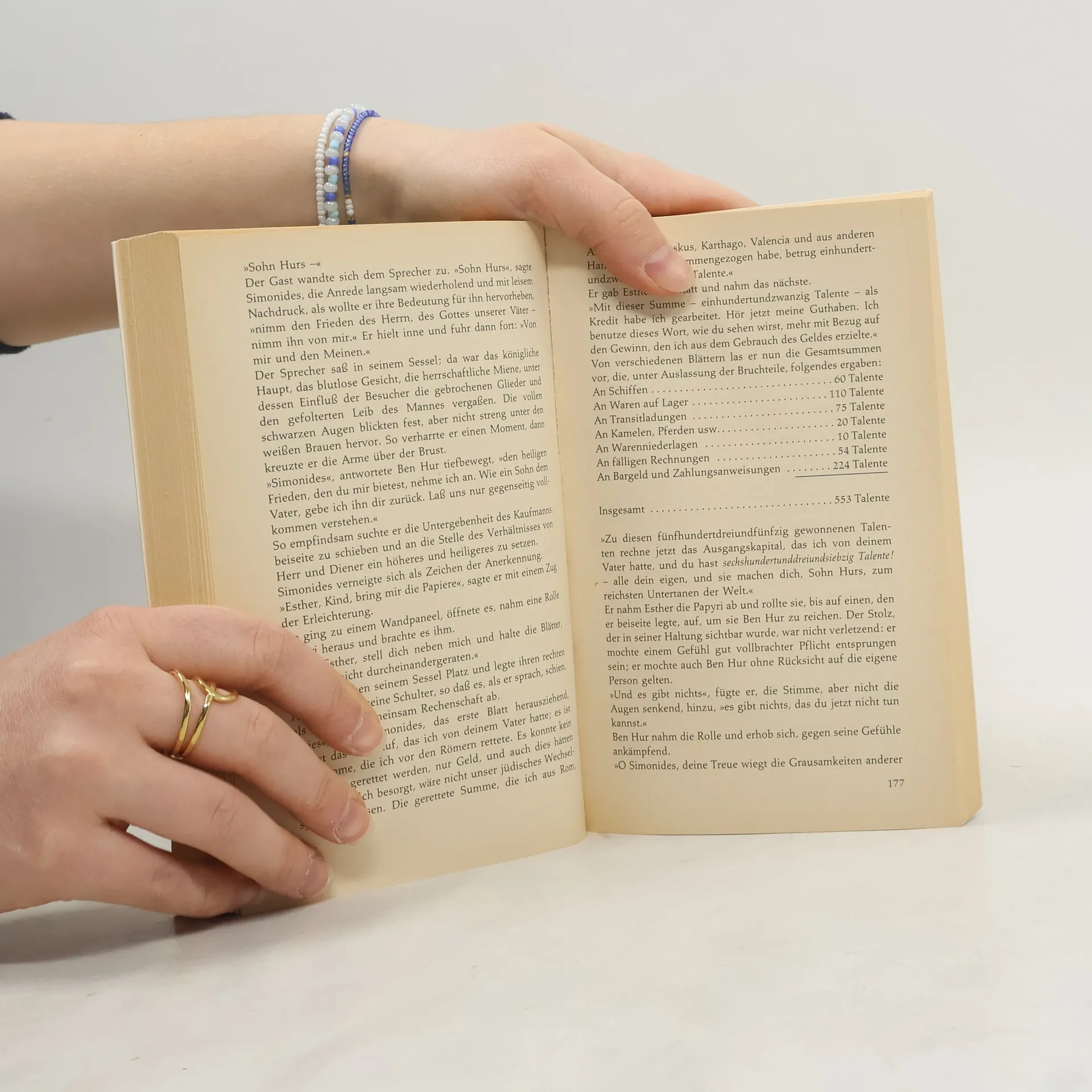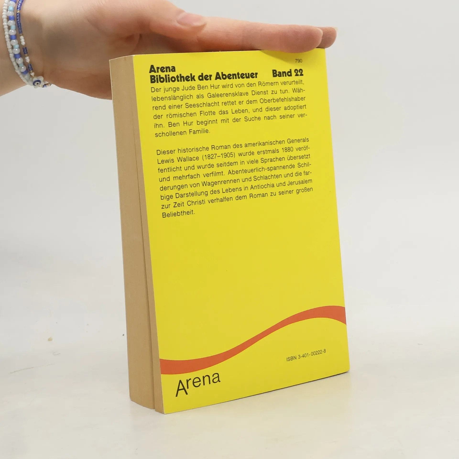 Als der römische Statthalter von Judäa bei seinem Einzug in Jerusalem von einem herabfallenden Ziegelstein lebensgefährlich verletzt wird, verurteilt man den jungen Judah Ben Hur wegen eines angeblichen Attentats, dessen sein einstiger Jugendfreund Messala ihn bezichtigt, zu lebenslangem Galeerendienst. Seine Mutter und seine Schwester werden ins Gefängnis geworfen. Als er einige Jahre später während einer Seeschlacht den Oberbefehlshaber der römischen Flotte vor dem Ertrinken rettet, schenkt dieser ihm die Freiheit. Ben Hur macht sich auf die Suche nach seiner Familie und seinem Widersacher, den er schließlich in einem dramatischen Zweikampf im Wagen-rennen herausfordert. Ben Hur ist eines der meistgelesenen Bücher der Welt. Es führt den Leser in die Zeit Christi und läßt ihn teilhaben am Schicksal des unrechtmäßig zum Galeerendienst verurteilten Judah Ben Hur und seiner Familie.