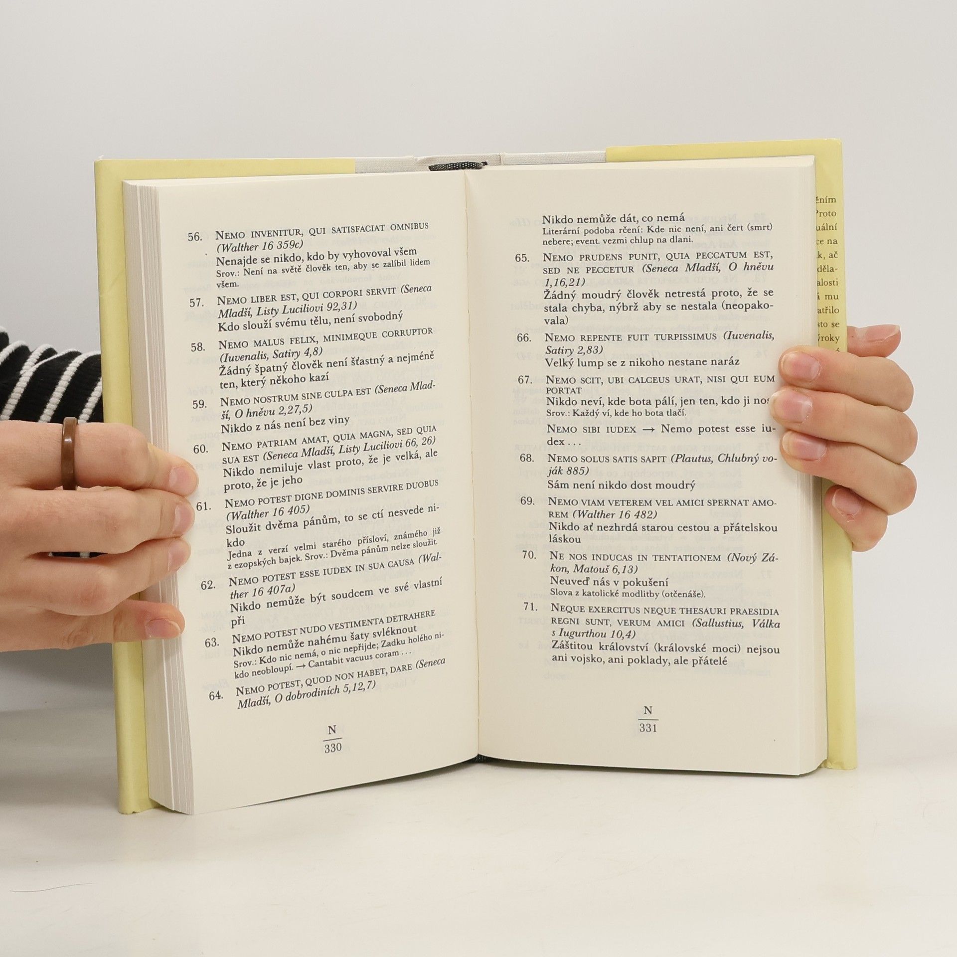 Latinské výroky a citáty řazené abecedně dle latinských originálů s českým abecedním rejstříkem vzadu.