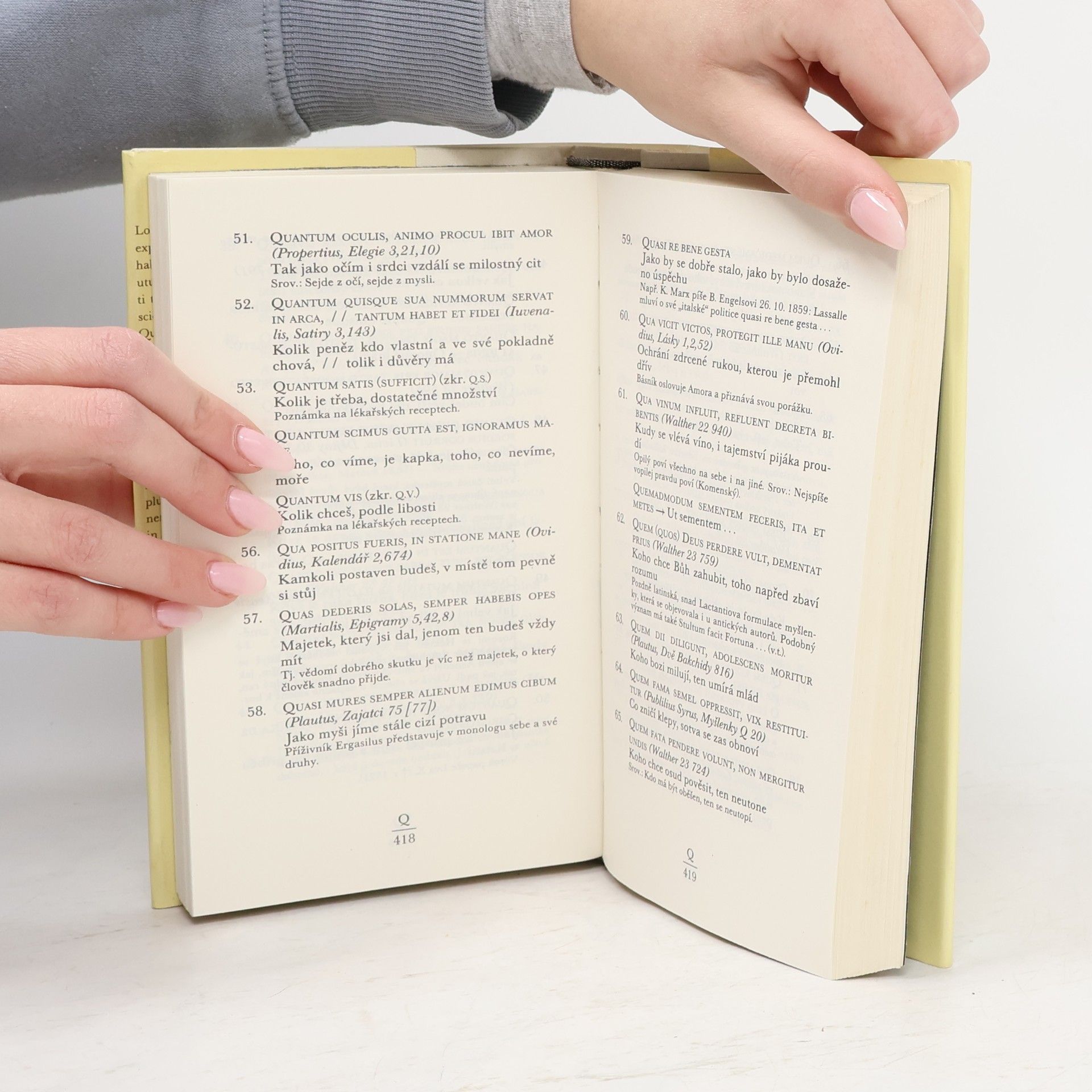 Latinské výroky a citáty řazené abecedně dle latinských originálů s českým abecedním rejstříkem vzadu.