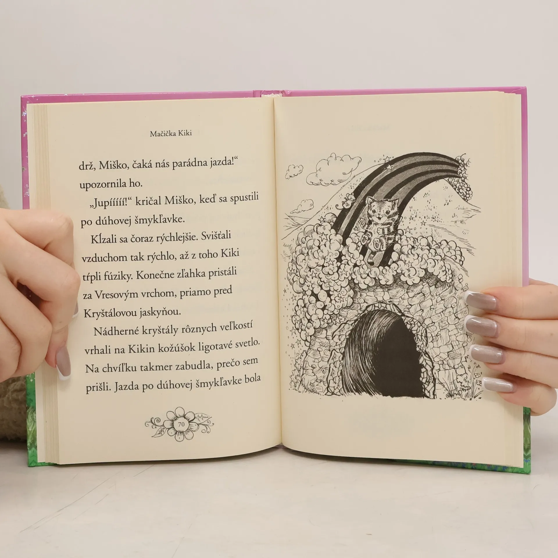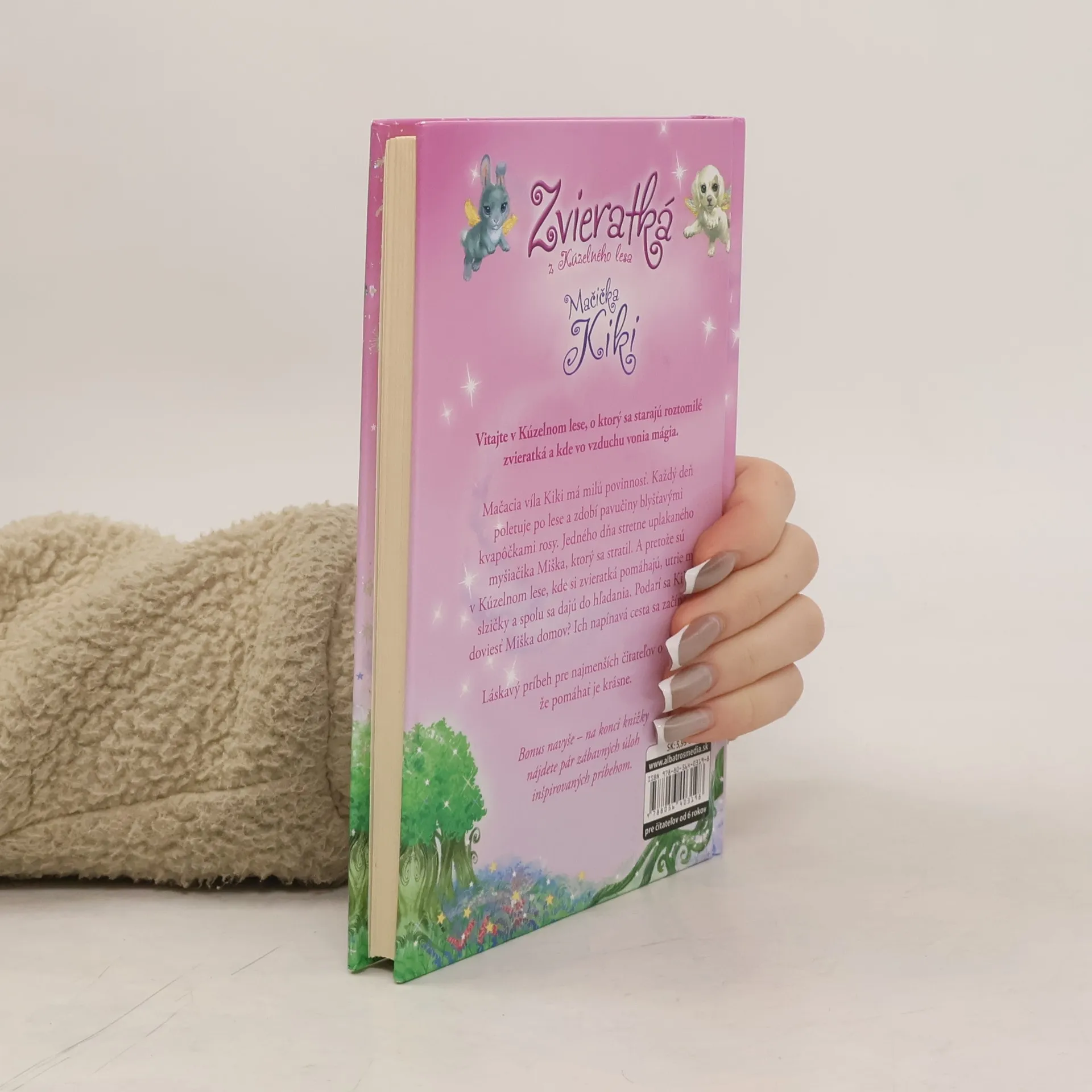Mačacia víla Kiki má milú povinnosť. Každý deň poletuje po lese a zdobí pavučiny blyšťavými kvapôčkami rosy. Jedného dňa stretne uplakaného myšiačika Miška, ktorý sa stratil. A pretože sú v Kúzelnom lese, kde si zvieratká pomáhajú, utrie mu slzičky a spolu sa dajú do hľadania. Podarí sa Kiki doviesť Miška domov? Ich napínavá cesta sa začína... Bonus navyše – na konci knižky nájdete pár zábavných úloh inšpirovaných príbehom.