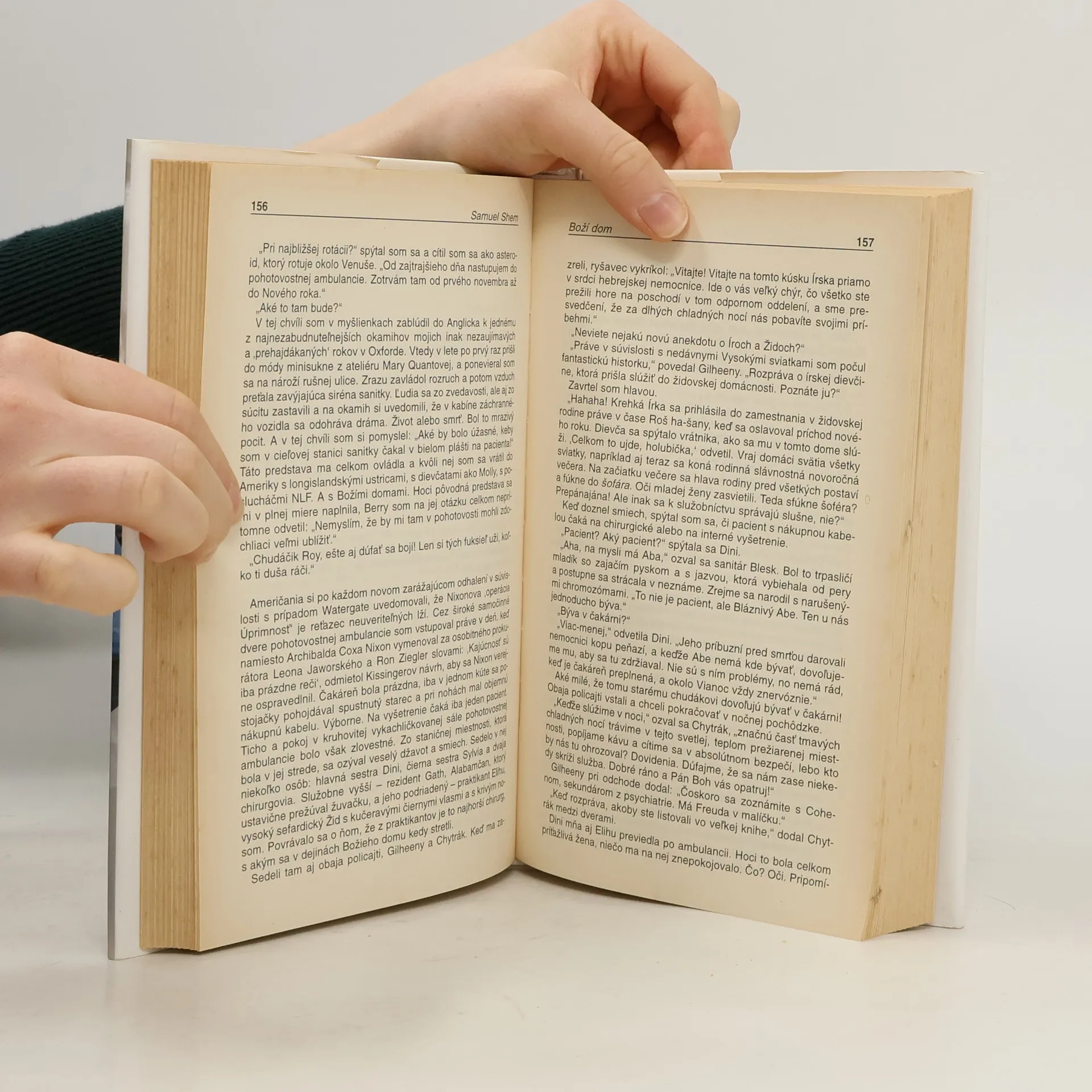 Román z lékařského prostředí s výraznými autobiografickými prvky, který při svém uvedení na americký knižní trh v roce 1978 způsobil doslova poprask v literárních i medicínských kruzích a je od té doby přirovnáván k Hellerovu románu Hlava 22 - tak jako Heller demýtizoval armádu, tak Shem píchl do vosího hnízda amerického zdravotnictví. Vylíčení poměrů v severoamerické nemocnici by se mohlo zdát příliš kruté, příliš syrové, příliš šokující, příliš přesexualizované, příliš přitažené za vlasy... je ale pravdivé. A dlužno podotknout, že není nijak zvlášť specifické jen pro americké poměry.