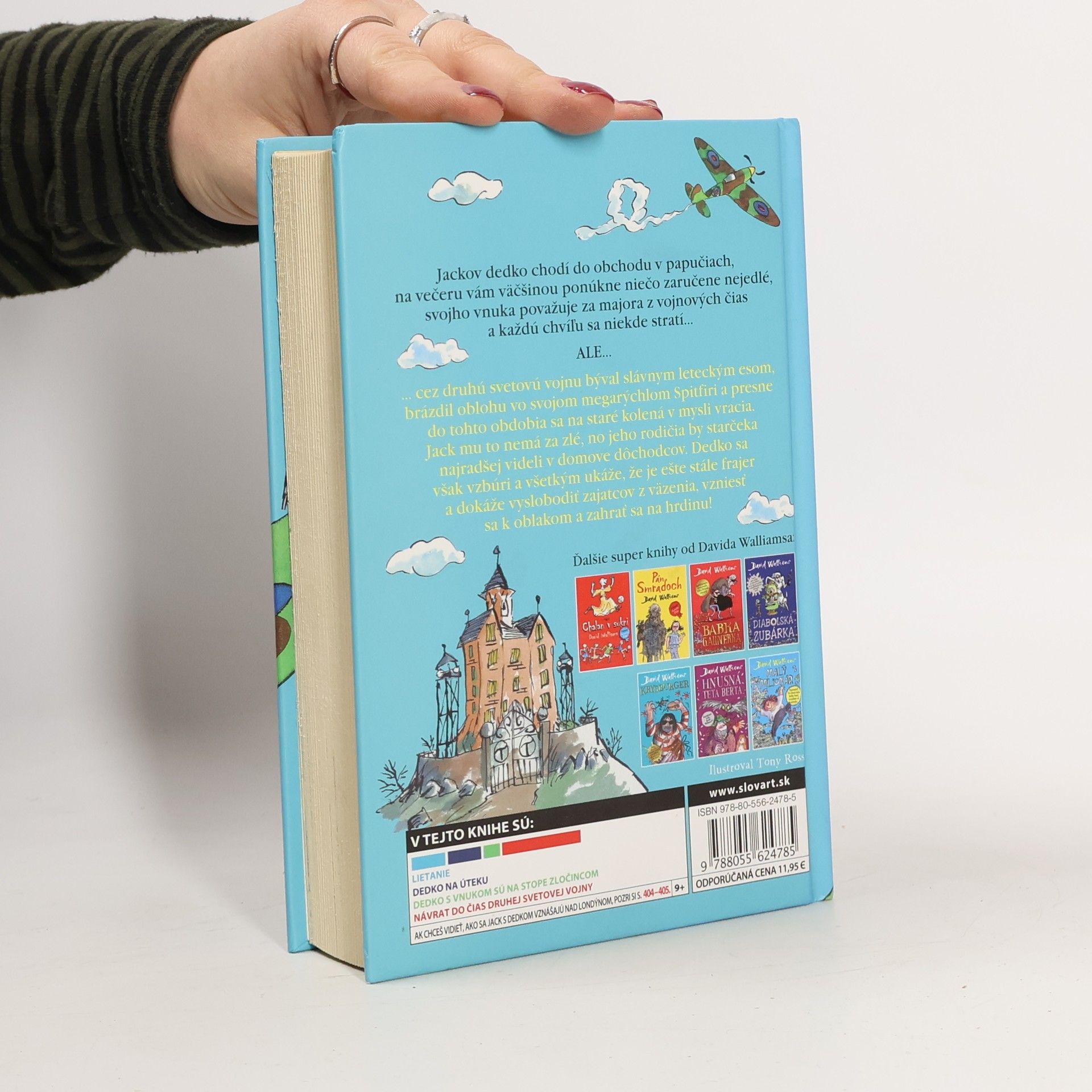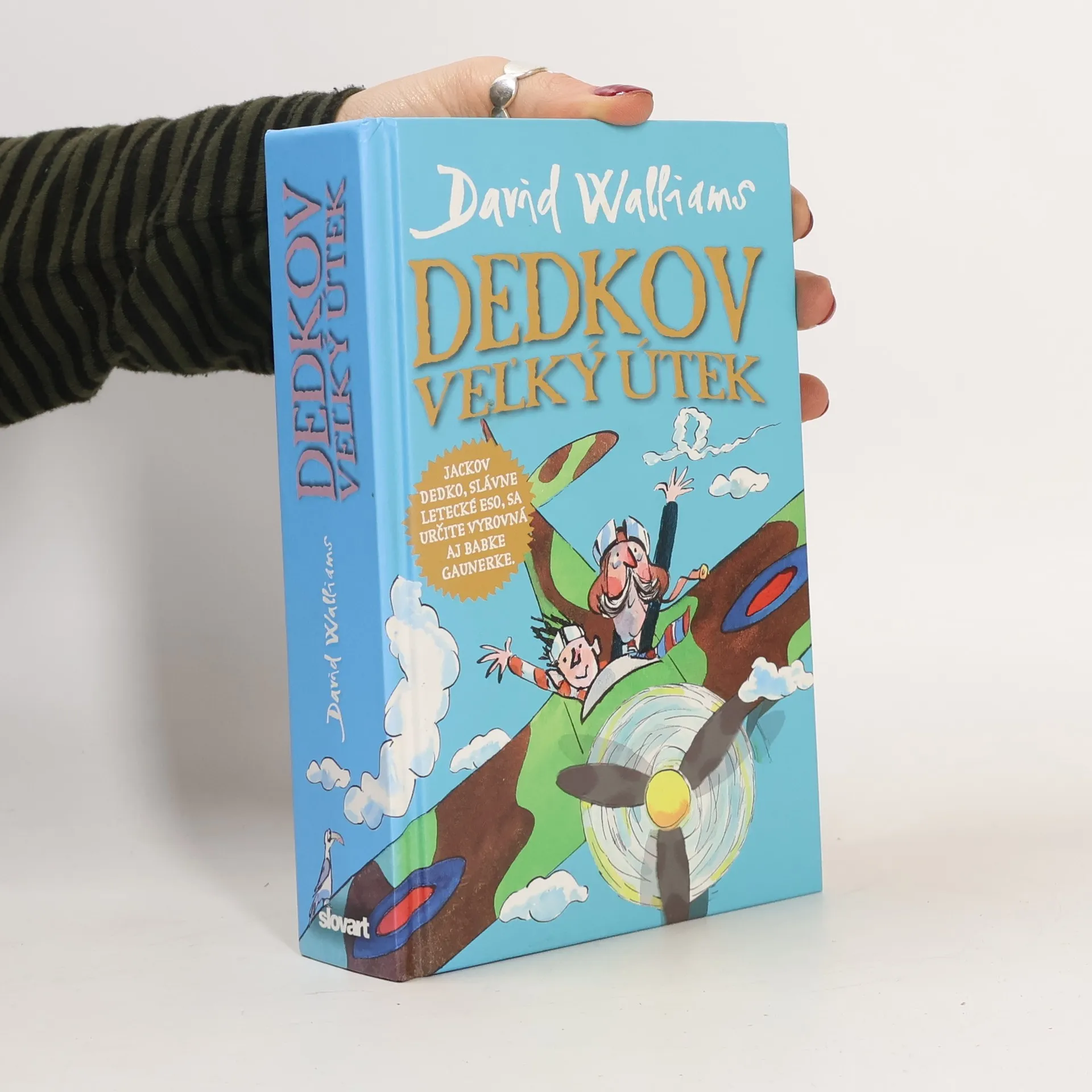 Ďalšia kniha od svetoznámeho britského komika a autora detských kníh Davida Walliamsa je príbehom chlapca, ktorého dedko sa určite vyrovná aj babke gaunerke. Jackov dedko totiž síce chodí do obchodu v papučiach, na večeru vám väčšinou ponúkne niečo fakt podozrivé z ešte podozrivejšej konzervy a často si nespomenie ani na meno vlastného vnuka, ale ešte stále si dokáže sadnúť do lietadla, vzniesť sa k oblakom a zahrať sa na hrdinu! Pridajte sa k Jackovi a jeho dedkovi a prežite s nimi vzrušujúci let nad Londýnom vo svete plnom snov a nebezpečných dobrodružstiev.