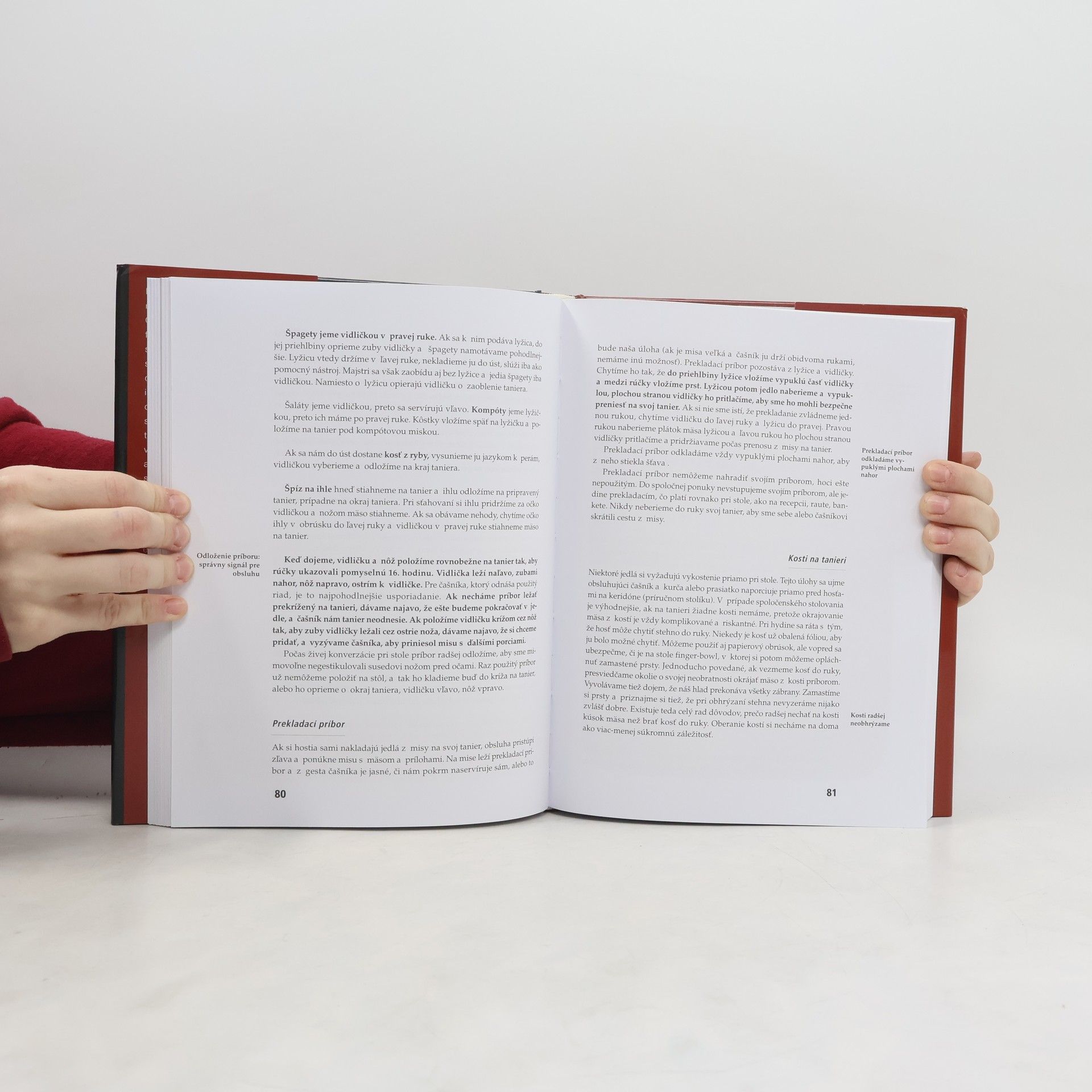 Kniha je univerzální průvodce různými společenskými událostmi. Seznamuje čtenáře se všemi formami společenského styku, se správným řešením společenských situací, s pravidly jednání jak doma, tak v cizině. Množstvím informací a rad překonává všechny dosud vydané příručky společenského chování. Poskytuje praktické návody, jak se chovat ve společnosti, v kanceláři, na ulici i doma, jak správně stolovat, jak se oblékat, jak se chovat na recepci, na banketu, jak připravit návštěvu ústavního činitele, jak jednat se zahraničními partnery. Vychází ze soudobého pojetí etikety a protokolu. Kniha je nezbytnou pomůckou pro školu, úřad, firmu i rodinu.