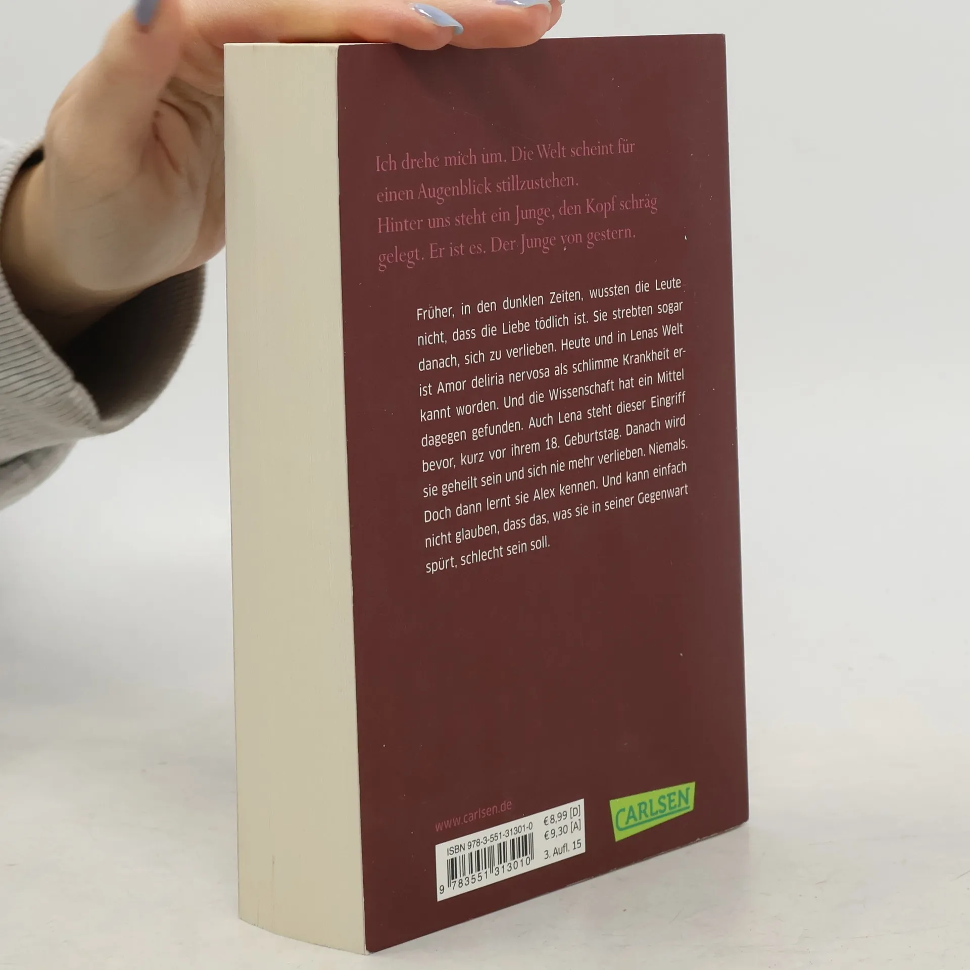 Früher, in den dunklen Zeiten, wussten die Leute nicht, dass die Liebe tödlich ist. Sie strebten sogar danach, sich zu verlieben. Heute und in Lenas Welt ist Amor Deliria Nervosa als schlimme Krankheit identifiziert worden. Doch die Wissenschaftler haben ein Mittel dagegen gefunden. Auch Lena steht dieser kleine Eingriff bevor, kurz vor ihrem 18. Geburtstag. Danach wird sie geheilt sein. Sie wird sich nicht verlieben. Niemals. Aber dann lernt sie Alex kennen. Und kann einfach nicht mehr glauben, dass das, was sie in seiner Anwesenheit spürt, schlecht sein soll.