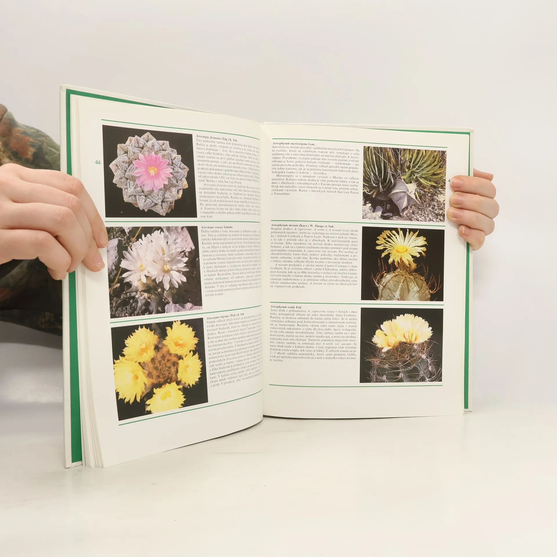 Kaktusy - tajuplné rastliny Nového sveta čoraz viac priťahujú pozornosť svojím nezvyčajným tvarom, atraktívnymi kvetmi sýtych farieb a mimoriadnou schopnosťou prispôsobiť sa rôznym podmienkam. Autori tejto obrazovej publikácie zvolili netradičný prístup pri jej koncipovaní. Skombinovali informácie o pôvode, výskyte, anatómii, fyziológii a základných pravidlách pestovania s opismi stovky najrozšírenejších alebo najzvláštnejších druhov. Zberateľsky atraktívne skupiny zastupujú guľovité kaktusy severoamerického a juhoamerického kontinentu, opuncie a cereusy. Nechýbajú ani rôzne zaujímavosti a kuriozity. Kapitoly: Terminologický slovníček, Aj kaktusy sú sukulenty, Kde rastú kaktusy v prírode, Kaktusy zblízka, Pestovanie kaktusov-Umiestnenie zbierky, Podmienky pestovania, Rok v zbierke, Presádzanie, Rozmnožovanie-Sejba, Odnože a odrezky, Vrúbľovanie, Pletivové kultúry. Choroby a škodcovia, Severoamerické guľovité kaktusy, Juhoamerické guľovité kaktusy, Cereusy, Opuncie, Kaktusy v rukách záhradníkov.