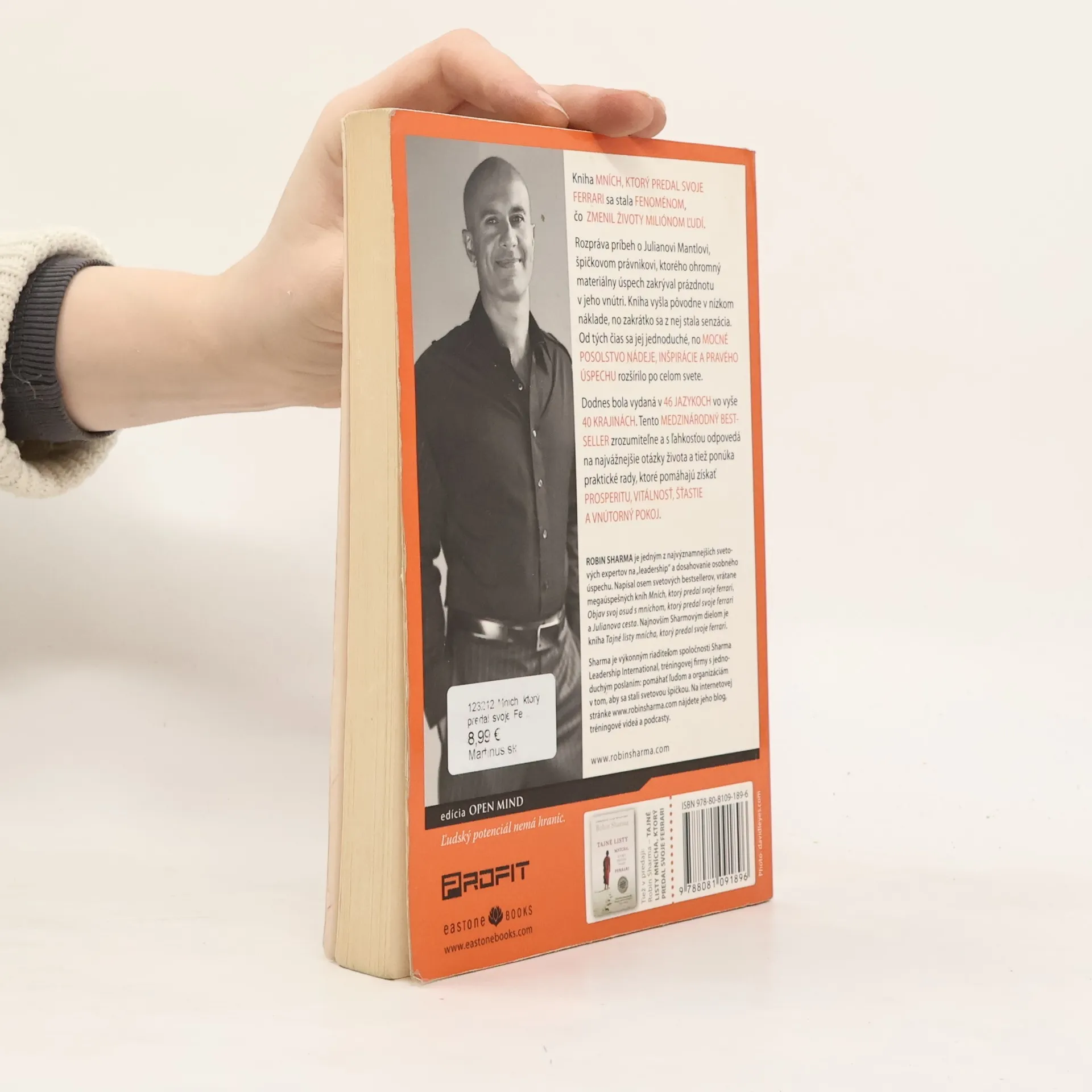 Mních, ktorý predal svoje Ferrari, je kniha, ktorá sa stala fenoménom. Vyšla pred desiatimi rokmi a odvtedy zmenila miliónom ľudí život. Rozpráva príbeh o Julianovi Mantlovi, špičkovom právnikovi, ktorého ohromný materiálny úspech zakrýval prázdnotu v jeho vnútri. Kniha vyšla pôvodne v nízkom náklade, no zakrátko sa z nej stala senzácia. Od tých čias sa jej jednoduché, no mocné posolstvo nádeje, inšpirácie a pravého úspechu rozšírilo po celom svete. Dodnes bola vydaná v 46 jazykoch vo vyše 40 krajinách. Tento medzinárodný bestseller zrozumiteľne a s ľahkosťou odpovedá na najvážnejšie otázky života a tiež ponúka praktické rady, ktoré pomáhajú získať prosperitu, vitálnosť, šťastie a vnútorný pokoj.