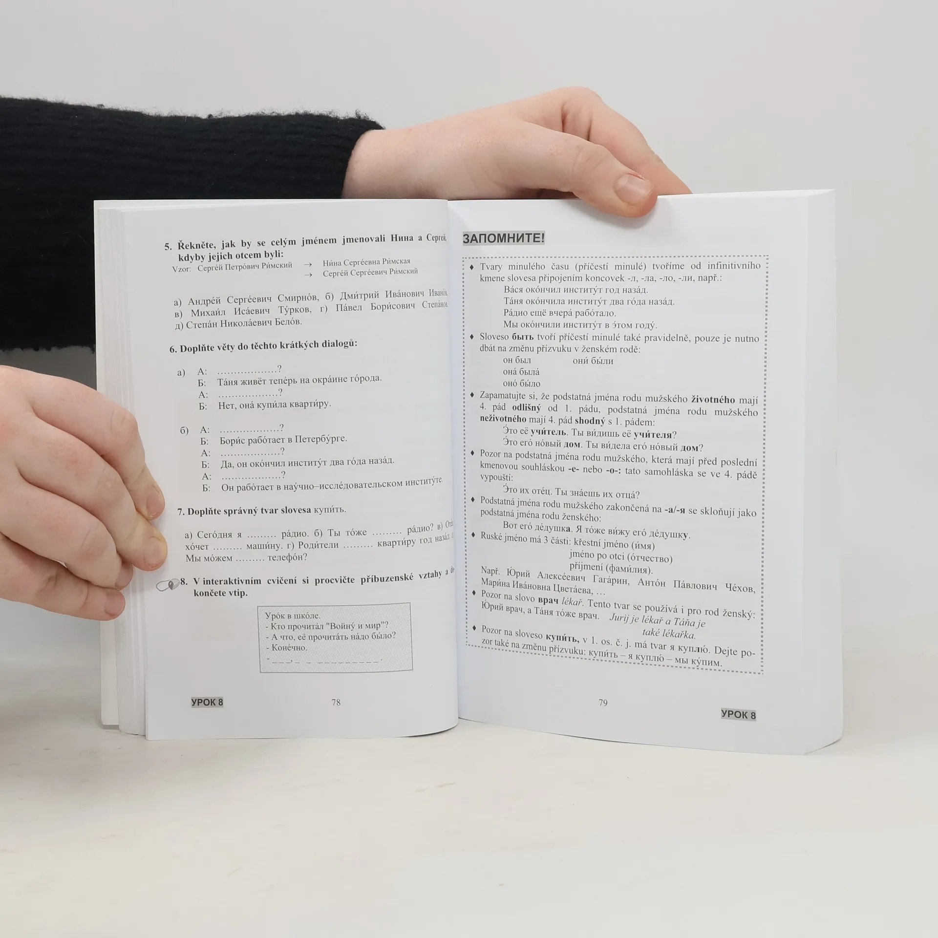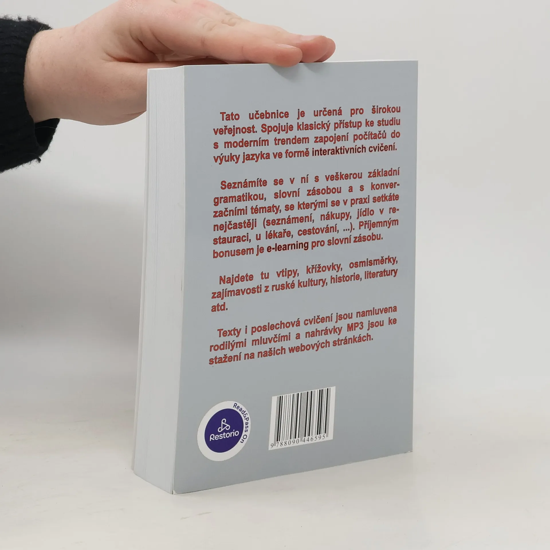 Tato klasická učebnice ruštiny, která studenty dovede přibližně na úroveň B1, je určena jak pro úplné začátečníky, tak i pro studenty, kteří si z nejrůznějších důvodů potřebují nebo chtějí oživit své znalosti.Součástí této publikace jsou i nahrávky namluvené rodilými mluvčími (v délce 183 minut) ke stažení zdarma, dále získáváte přístup k 120 interaktivním cvičením na procvičování slovní zásoby (přibližně 1 800 slovíček) a gramatických jevů na počítači. Dalších více než 90 interaktivních cvičení je optimalizováno i pro tablety a mobilní telefony. V zadní části učebnice naleznete slovníček a klíč.