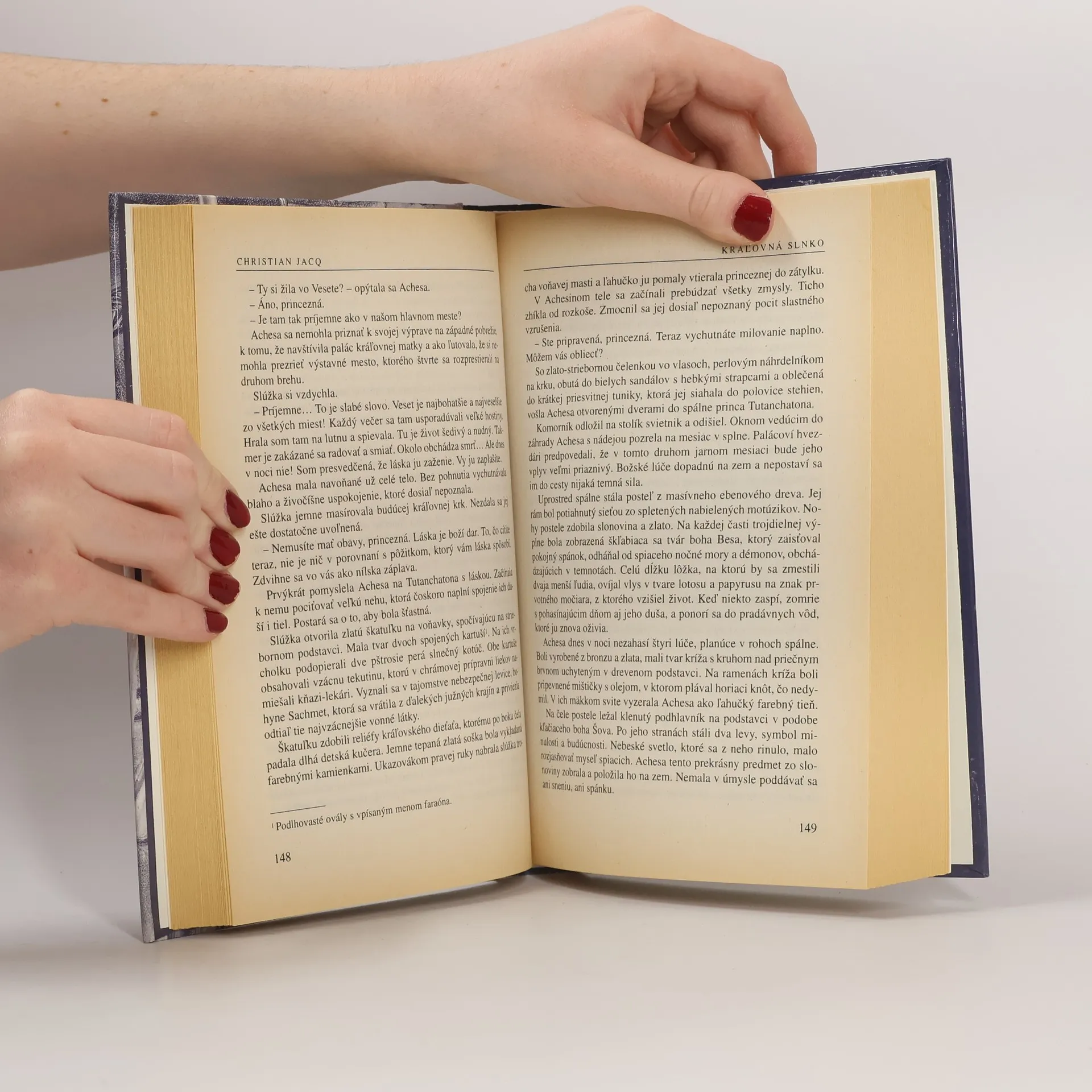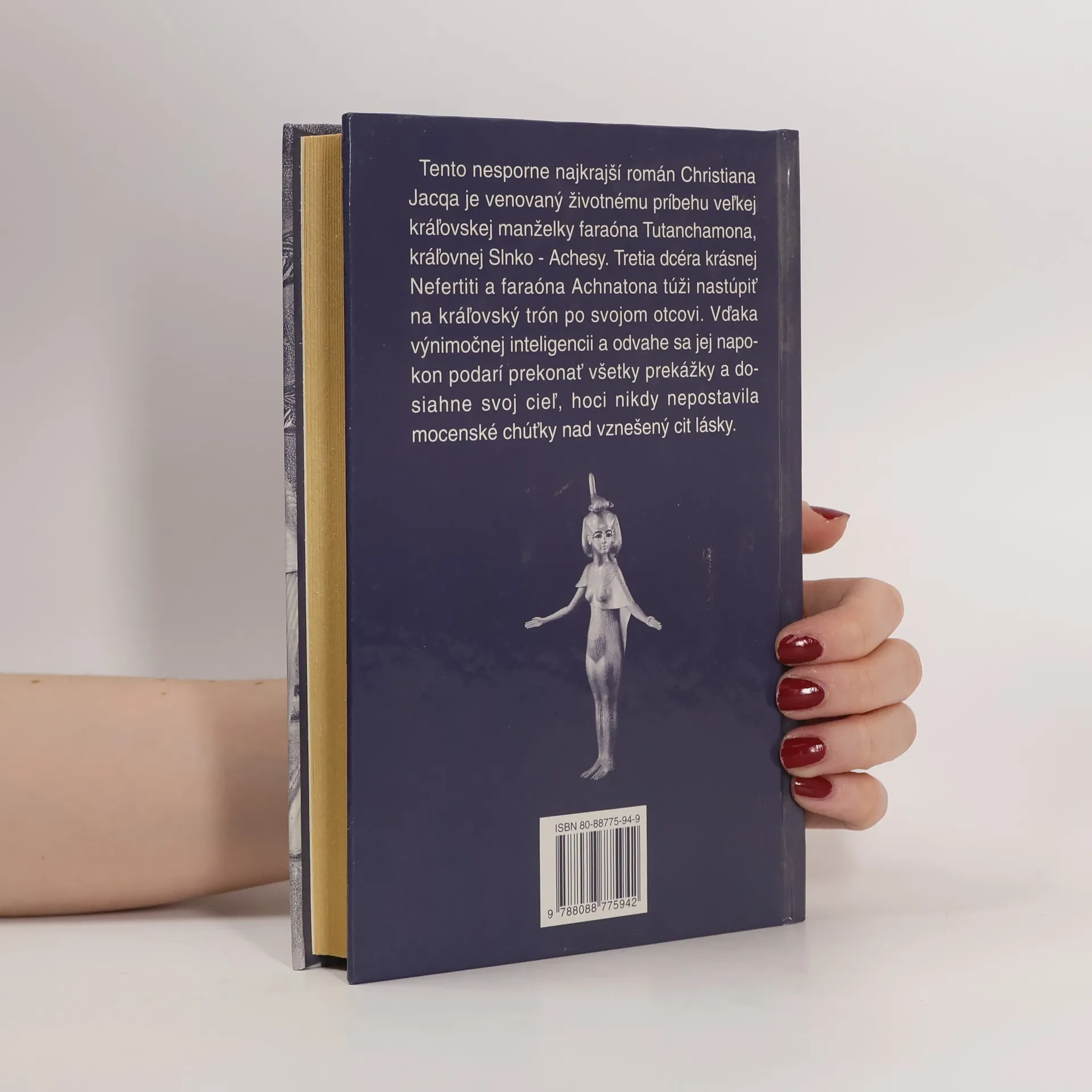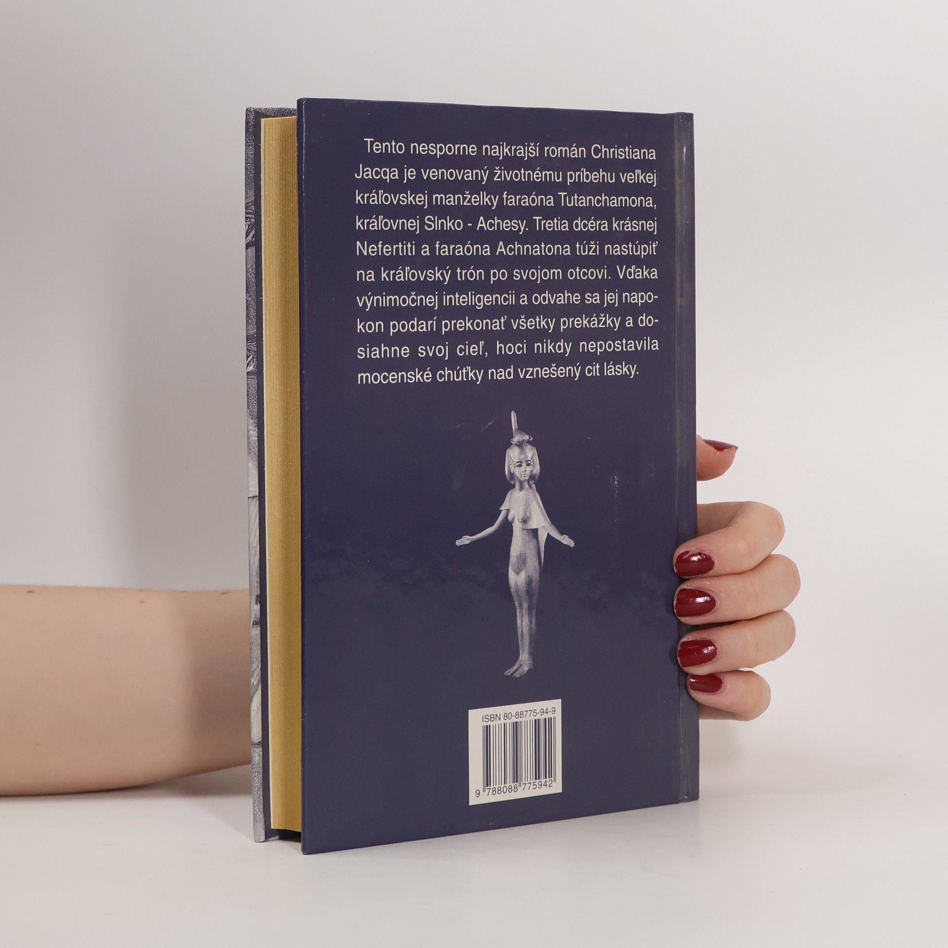 V najkrajšom románe Christiana Jacqa sú historické reálie popretkávané intrigami, zradami, atentátmi, bojom o moc, nadprirodzenými silami a čarami, ale i všadeprítomnou láskou. Sen ctižiadostivej Achesy, dcéry významného faraóna Achnatona a krásnej Nefertiti je nereálny. Lenže reťaz nešťastí, ktoré postihli kráľovskú dynastiu, jej ho pomôže splniť. Kým sa však stane skutočnou kráľovnou Egypta, musí prejsť mnohými tvrdými skúškami, vysporiadať sa so všemocnými a často zákernými kňazmi, odraziť nápor Chetitov a udržať mier. Dá sa to vôbec všetko zvládnuť? V tomto nesporne najkrajšom románe Christiana Jacqa sú historické reálie (korunovácie, mumifikácia faraónov, mnohé magické rituály a obrady zasvätenia do mystérií cechu, výroba papyrusu a podobne) popretkávané intrigami, zradami, atentátmi, bojom o moc, nadprirodzenými silami a čarami, ale i všadeprítomnou láskou. Autor sa necháva strhnúť fantáziou, aby umožnil čitateľovi vniknúť do osobného i intímneho života historických postáv a vytvoriť si takto nich ucelený obraz, čím sa tento román stáva ešte pútavejším. Je plný napätia, zvratov a prekvapení, ale to najväčšie prekvapenie je ukryté na konci.