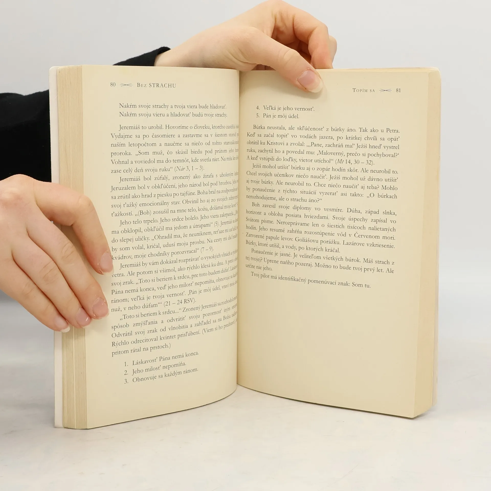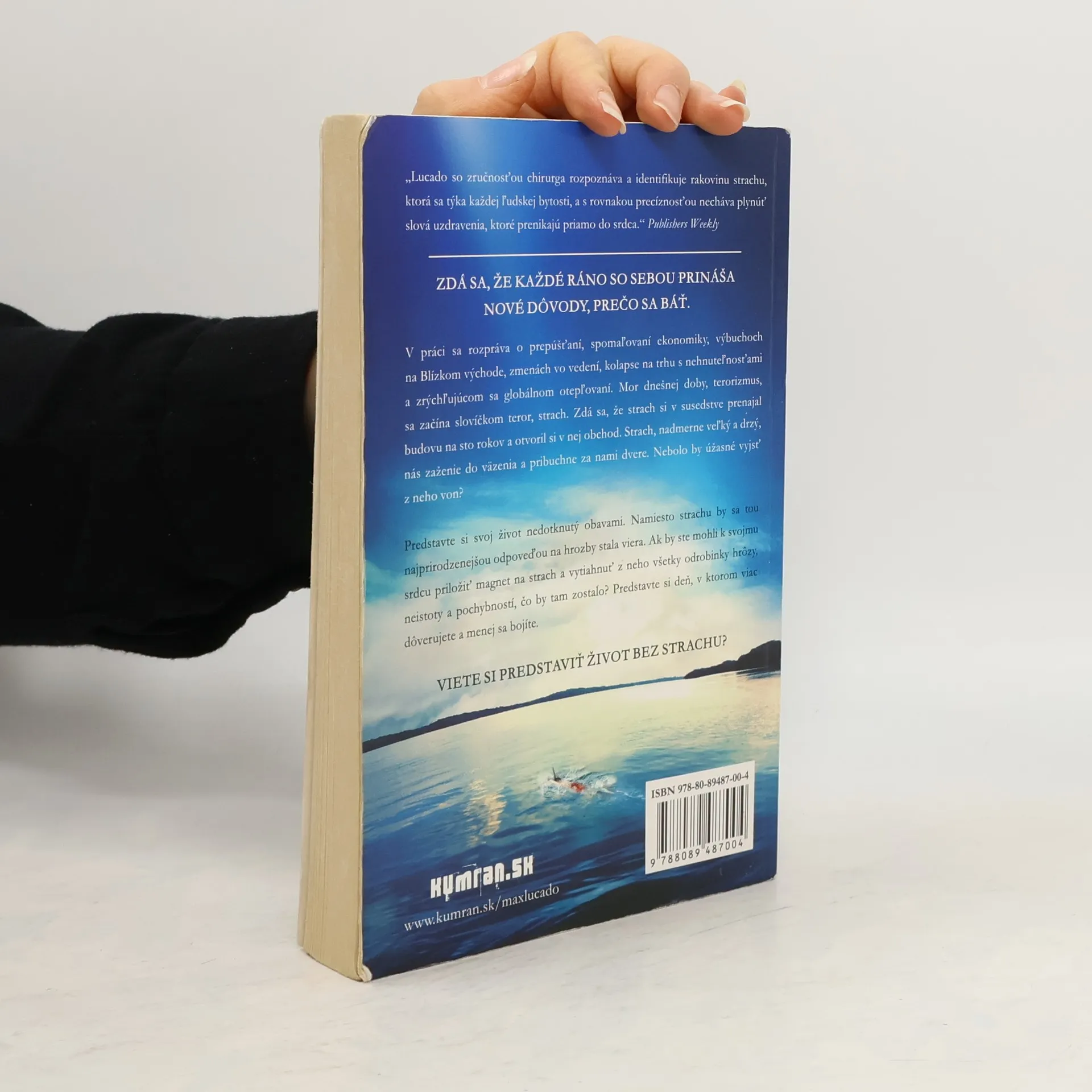 V práci sa rozpráva o prepúšťaní, spomaľovaní ekonomiky, výbuchoch na Blízkom východe, zmenách vo vedení, kolapse na trhu s nehnuteľnosťami a zrýchľujúcom sa globálnom otepľovaní. Mor dnešnej doby, terorizmus, sa začína slovíčkom teror, strach. Zdá sa, že strach si v susedstve prenajal budovu na sto rokov a otvoril si v nej obchod. Strach, nadmerne veľký a drzý, nás zaženie do väzenia a pribuchne za nami dvere. Nebolo by úžasné vyjsť z neho von? Predstavte si svoj život nedotknutý obavami. Namiesto strachu by sa tou najprirodzenejšou odpoveďou na hrozby sveta stala viera. Ak by ste mohli k svojmu srdcu priložiť magnet na strach a vytiahnuť z neho všetky odrobinky hrôzy, neistoty a pochybností, čo by tam zostalo? Predstavte si deň, v ktorom viac dôverujete a menej sa bojíte. VIETE SI PREDSTAVIŤ ŽIVOT BEZ STRACHU? „Lucado so zručnosťou chirurga rozpoznáva a identifikuje rakovinu strachu, ktorá sa týka každej ľudskej bytosti, a s rovnakou precíznosťou necháva plynúť slová uzdravenia, ktoré prenikajú priamo do srdca.“ Publishers Weekly