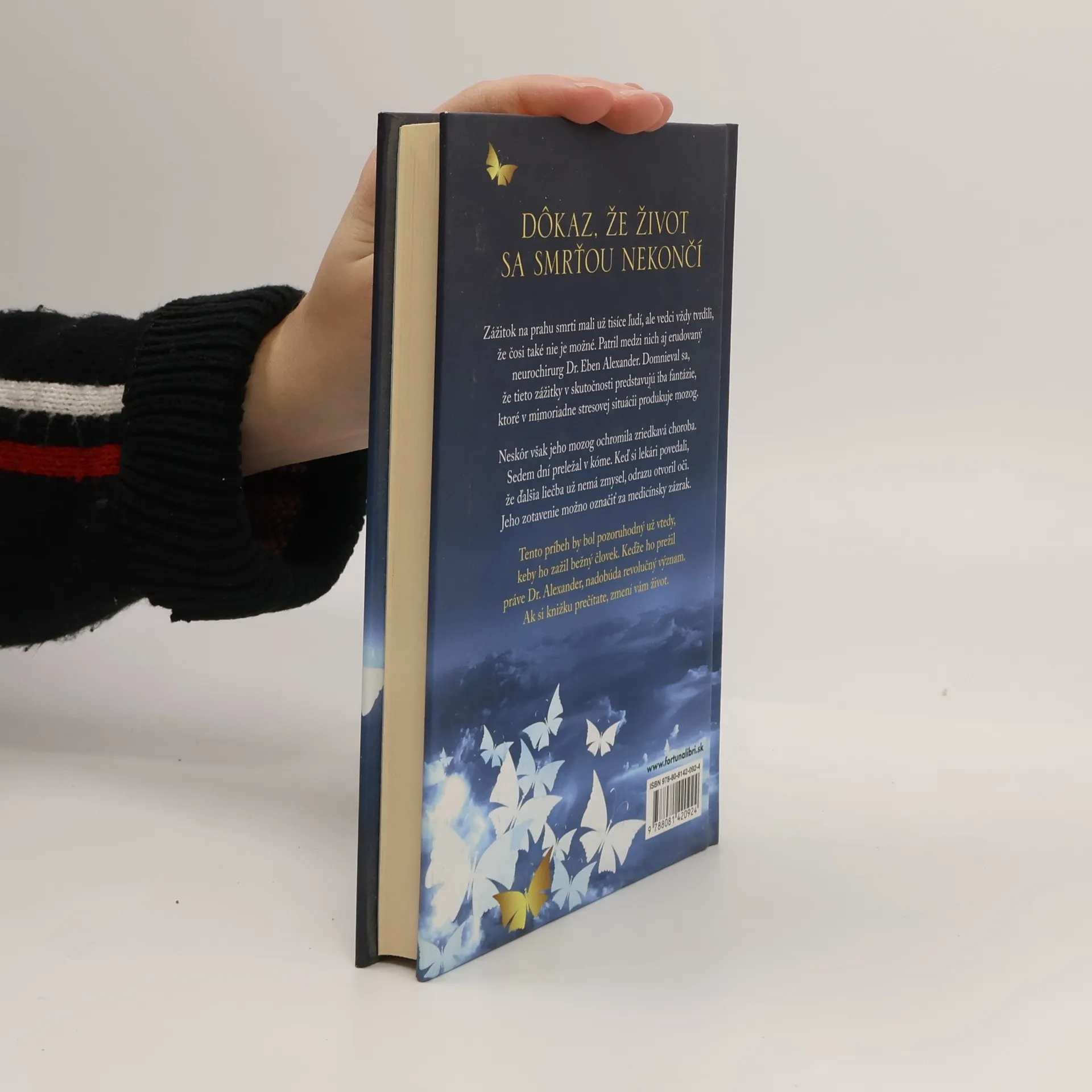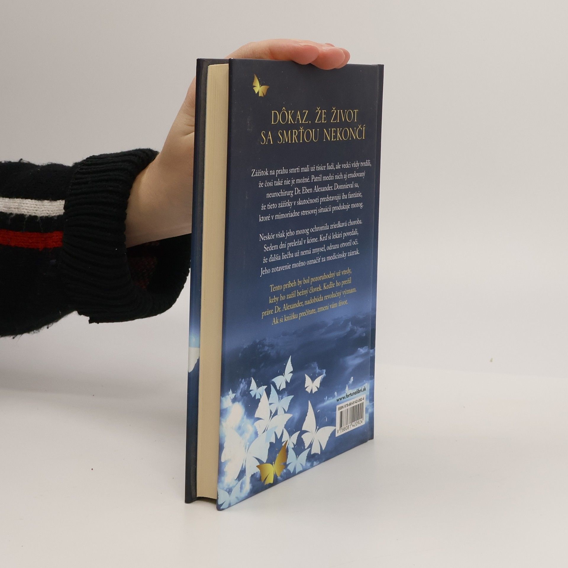 Jedinečný, skutočný príbeh neurochirurga, ktorý opisuje svoje zážitky na prahu smrti. Tento príbeh by bol pozoruhodný už vtedy, keby ho zažil bežný človek. Keďže ho prežil práve Dr. Alexander, nadobúda revolučný význam. Nebude ho môcť ignorovať nijaký vedec či veriaci. Zmení pohľad na život. Dr. Eben Alexander prichádza s naozaj ohromujúcim zážitkom na prahu smrti. Za vyše štyridsať rokov, čo sa venujem tomuto javu, som nepočul o takom šokujúcom príbehu. Výpoveď Dr. Alexandra predstavuje živý dôkaz posmrtného života. Raymond A. Moody, M. D., Ph.D., autor knihy Život po živote Zážitok na prahu smrti mali už tisíce ľudí, ale vedci vždy tvrdili, že čosi také nie je možné. Patril medzi nich aj erudovaný neurochirurg Dr. Eben Alexander. Domnieval sa, že tieto zážitky v skutočnosti predstavujú iba fantázie, ktoré v mimoriadne stresovej situácii produkuje mozog. Neskôr však jeho mozog ochromila zriedkavá choroba. Sedem dní preležal v kóme. Keď si lekári povedali, že ďalšia liečba už nemá zmysel, odrazu otvoril oči. Jeho zotavenie možno označiť za medicínsky zázrak. Skutočný zázrak jeho príbehu spočíva v niečom inom. Kým ležal v kóme, prenikol za hranice tohto sveta a spoznal anjelskú bytosť, ktorá ho zaviedla do najhlbších zákutí nadpozemskej existencie.