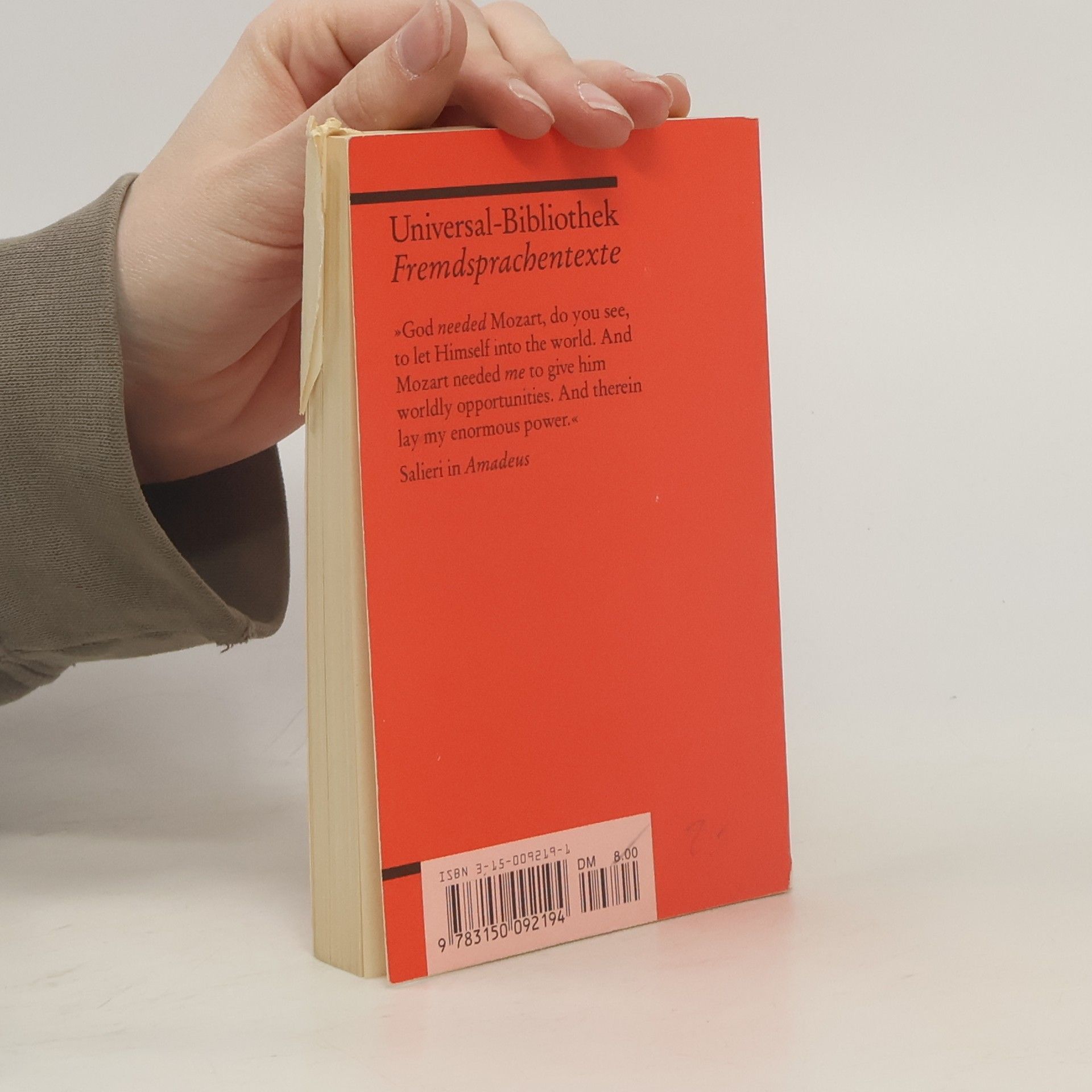 Mozart mit den Augen Salieris betrachtet: Die Tragik eines Mannes, der in der Begegnung mit dem Genie sich seiner Mittelmäßigkeit bewusst wird. Shaffer schrieb nach seinem Theaterstück auch das Drehbuch für die mit 8 Oscars ausgezeichnete Verfilmung durch Milos Forman. Ungekürzte und unbearbeitete Textausgabe in der Originalsprache, mit Übersetzungen schwieriger Wörter am Fuß jeder Seite, Nachwort und Literaturhinweisen.