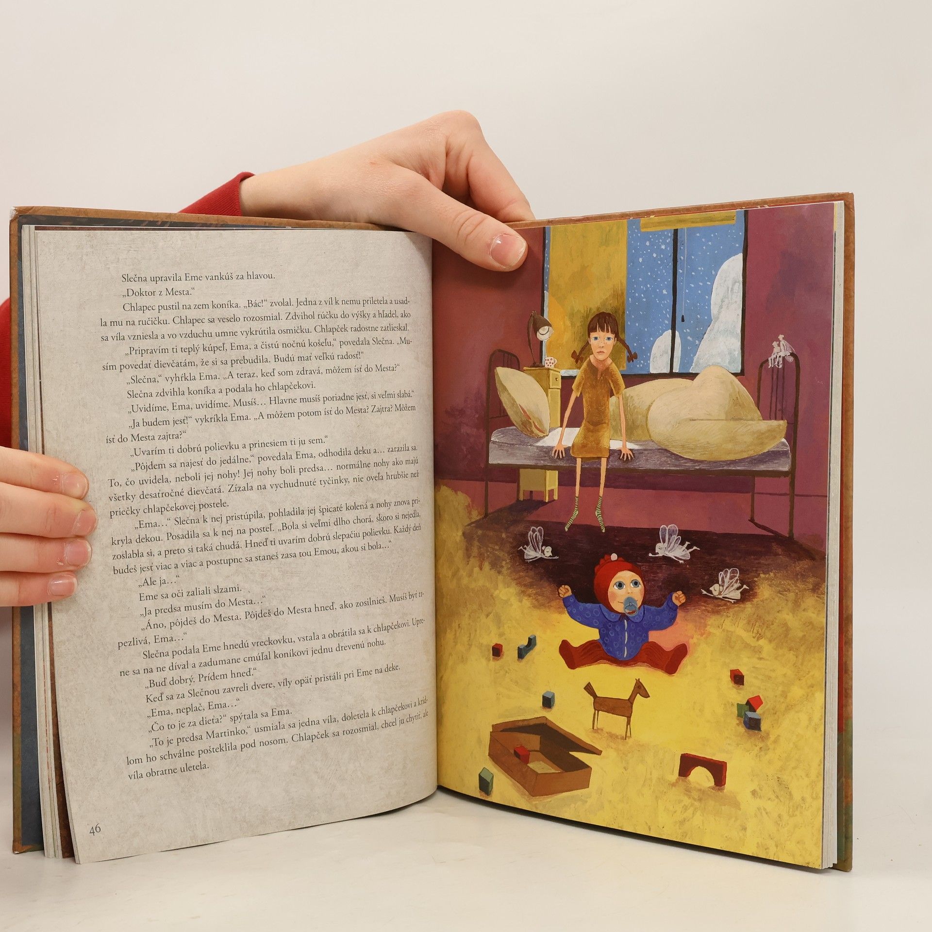 Desaťročné dievčatko Ema si nespomína, že by niekedy žilo inde, než v chudobnom a smutnom Sirotinci pre opustené deti. Aj keď nosí ústavnú rovnošatu, od svojich spolubývajúcich kamarátok sa líši schopnosťami vidieť nevidené a počuť nepočuté. Veľkou radosťou pre dievčatá je cesta do Mesta, ktorú smie každá z nich absolvovať v deň svojich desiatych narodenín. Ema chorobne túži po Meste, aj keď ju od cesty odrádzajú jej priateľky – miniatúrne lietajúce víly. Ema nevydrží čakať a v noci sa pokúsi o útek… Mesto ju ale privíta nepriateľsky. Jej dobrodružstvo je veľmi nebezpečné! Ema si z Mesta odnáša cennú vec – čarovnú knihu. Knihu, ktorej dorastajú stránky a ktorá plní detské priania. Rozprávkový príbeh o dievčatku Eme je tajomný, napínavý a dojímavý zároveň. Je pre deti, ale osloví aj tých dospelých, ktorí sa občas schovávajú v nádhernej ríši snov.