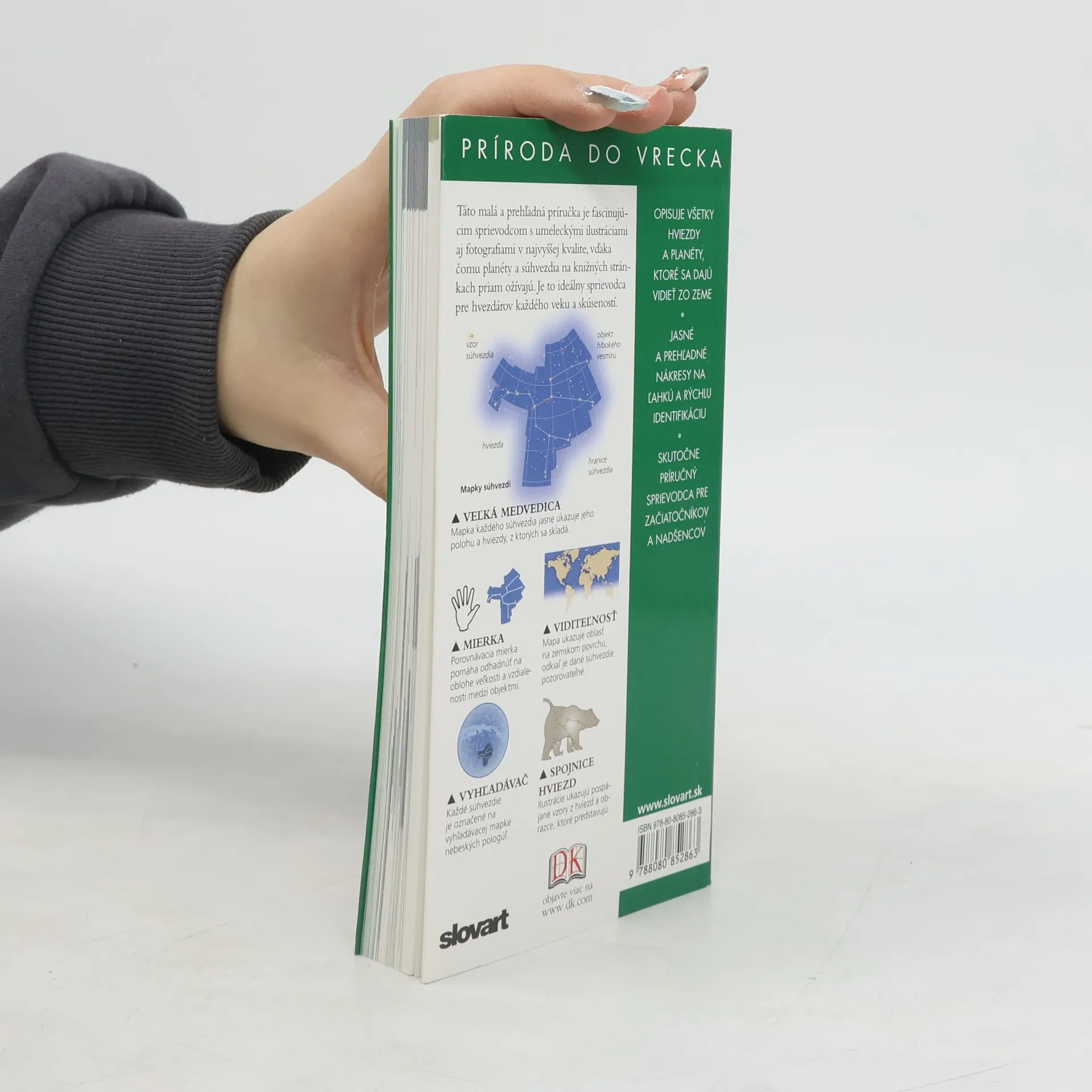 Tento unikátny vizuálny sprievodca je vaším kľúčom pri vyhľadávaní a určovaní planét a hviezd viditeľných na nočnej oblohe. Kniha Nočná obloha z edície Príroda do vrecka je perfektný sprievodca svetom hviezd a planét, ktoré sú pozorovateľné kdekoľvek na Zemi a pomôže úplným začiatočníkom aj skúseným astronómom.