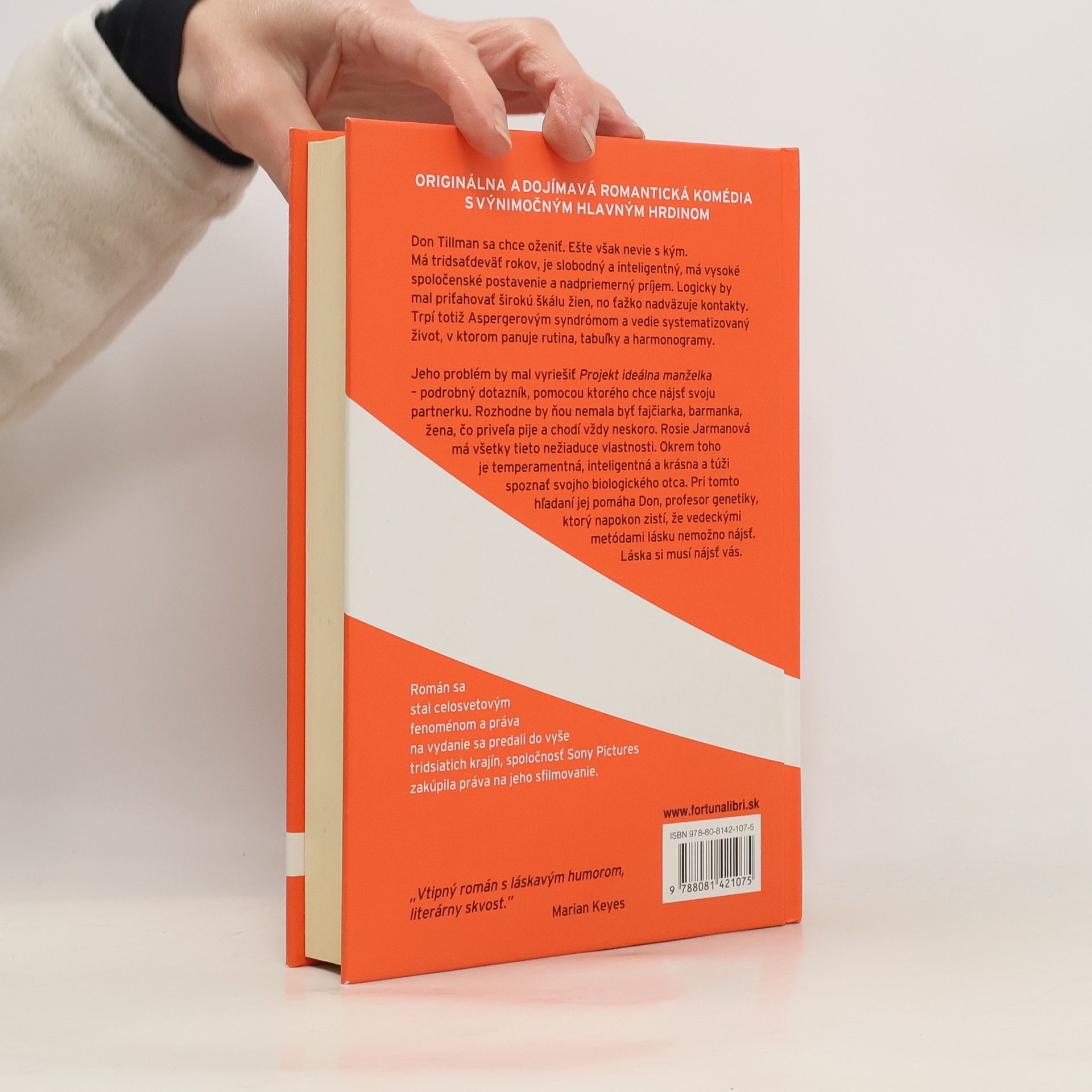 Don Tillman sa chce oženiť. Ešte však nevie s kým. Má tridsaťdeväť rokov, je slobodný a inteligentný, má vysoké spoločenské postavenie a nadpriemerný príjem. Logicky by mal priťahovať širokú škálu žien, no ťažko nadväzuje kontakty. Trpí totiž Aspergerovým syndrómom a vedie systematizovaný život, v ktorom panuje rutina, tabuľky a harmonogramy. Jeho problém by mal vyriešiť Projekt ideálna manželka – podrobný dotazník, pomocou ktorého chce nájsť svoju partnerku. Rozhodne by ňou nemala byť fajčiarka, barmanka, žena, čo priveľa pije a chodí vždy neskoro. Rosie Jarmanová má všetky tieto nežiaduce vlastnosti. Okrem toho je temperamentná, inteligentná a krásna a túži spoznať svojho biologického otca. Pri tomto hľadaní by jej Don, profesor genetiky, mohol byť veľmi nápomocný.
