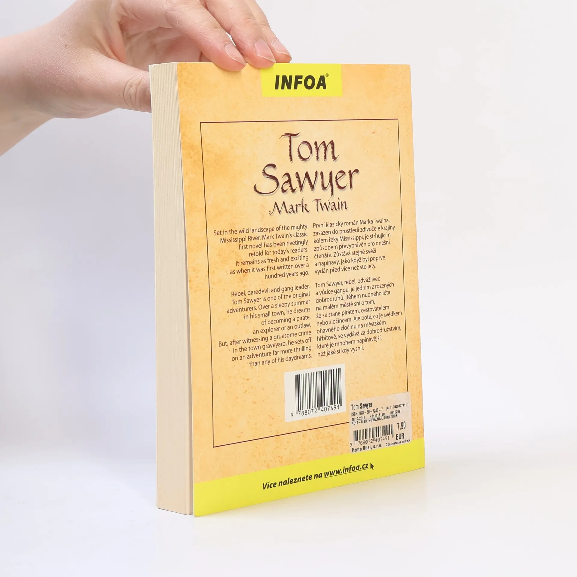 První klasický román Marka Twaina, zasazen do prostředí zdivočelé krajiny kolem řeky Mississippi, je strhujícím způsobem převyprávěn pro dnešní čtenáře. Zůstává stejně svěží a napínavý, jako když byl poprvé vydán před více než sto lety. Tom Sawyer, rebel, odvážlivec a vůdce gangu, je jedním z rozených dobrodruhů. Během nudného léta na malém městě sní o tom, že se stane pirátem, cestovatelem nebo zločincem. Ale poté, co je svědkem ohavného zločinu na městském hřbitově, se vydává za dobrodružstvím, které je mnohem napínavější, než jaké si kdy vysnil. Anglicko-český zrcadlový text (pro mírně pokročilé)
