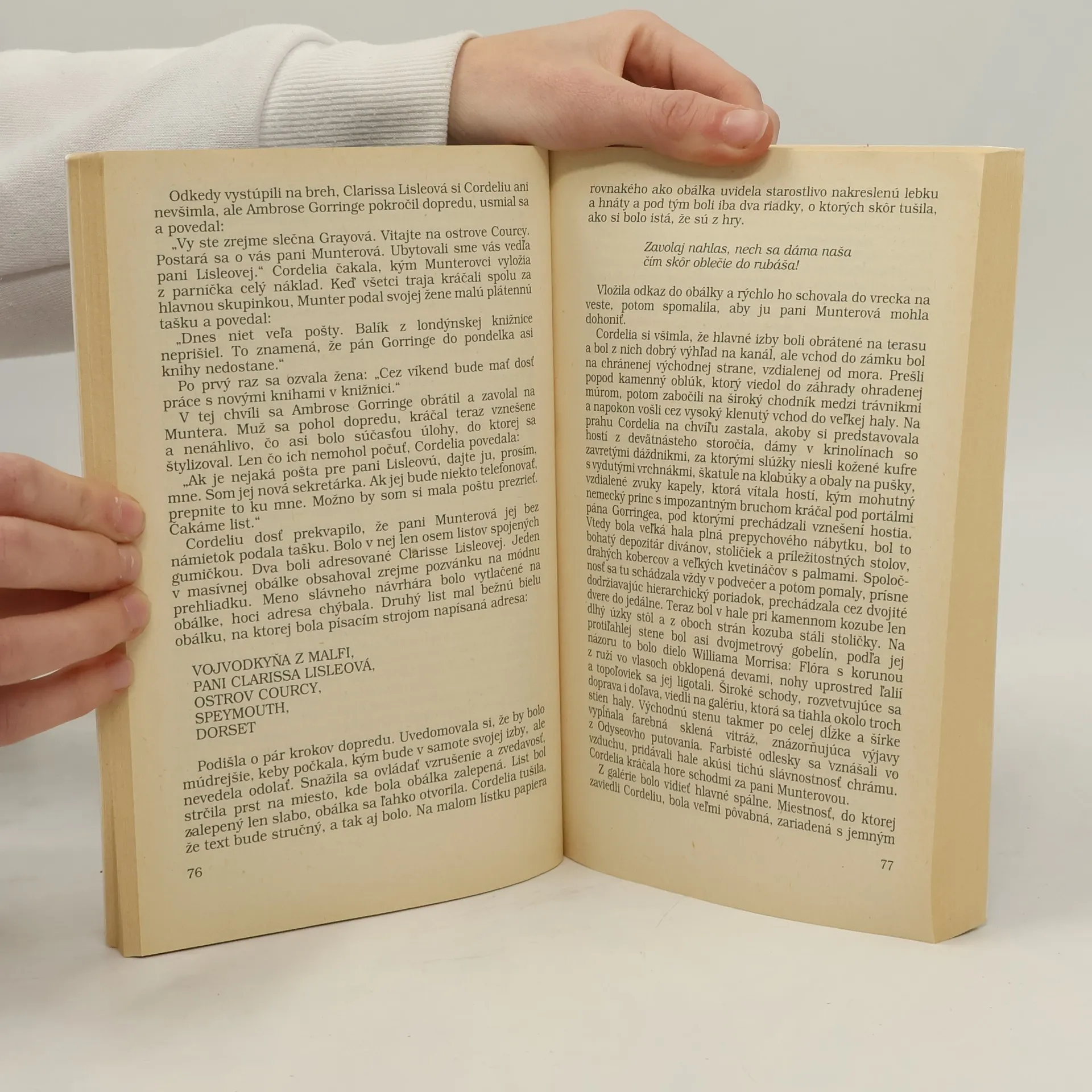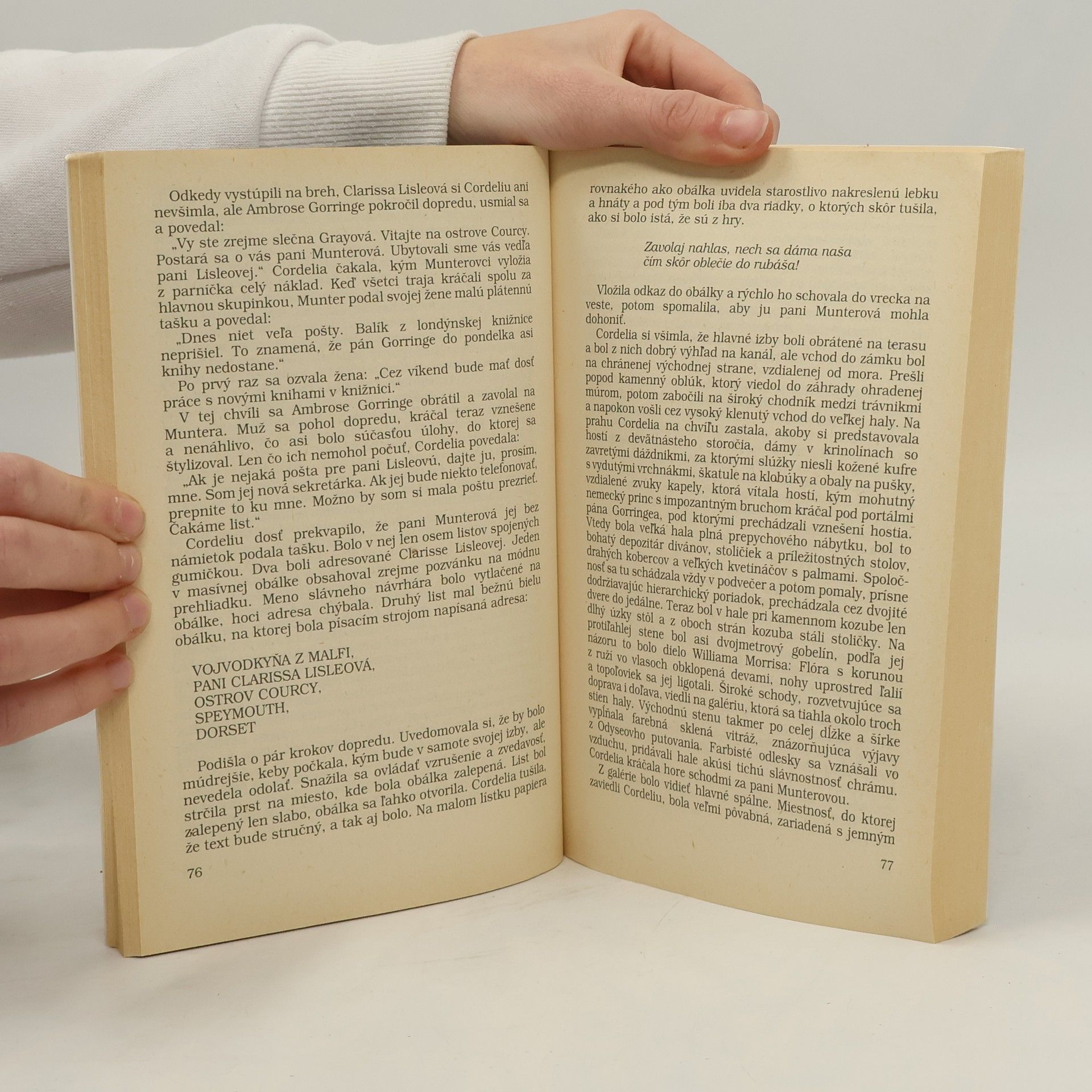 Príbeh s uzavretým kruhom podozrivých je majstrovským spojením klasickej detektívky a hororu. Hlavnú hrdinku, krásnu a bezcitnú herečku Clarissu Lisleovou, dovádza k šialenstvu série anonymov; chce ju neznámy odosielateľ len vydesiť, chce zničiť jej kariéru, alebo jej skutočne usiluje o život? To má zistiť Cordelia Grayová, majiteľka detektívne kancelárie, ktorú na túto prácu najme herečkin manžel.