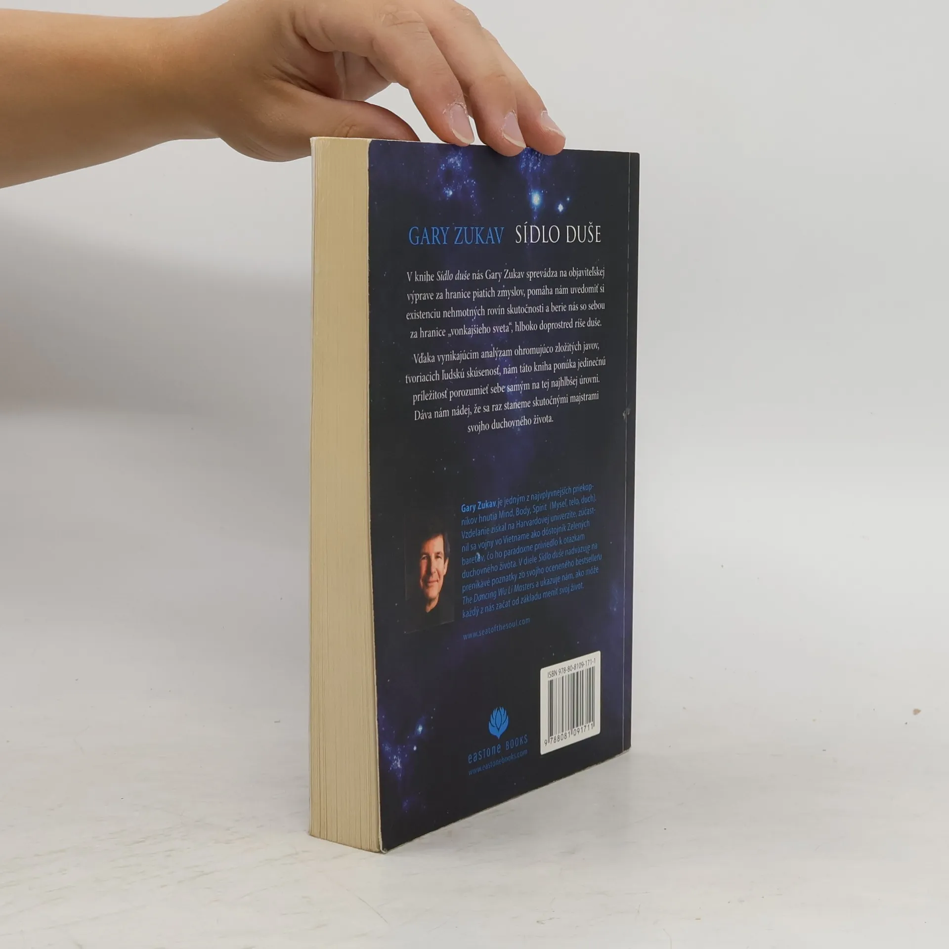Slovensky. Objaviteľská výprava za hranice piatich zmyslov. Gary Zukav v knihe Sídlo duše napovedá, ako si uvedomiť existenciu nehmotných rovín skutočnosti. Vďaka hlbokým analýzam zložitých javov, ktoré spoluvytvárajú ľudskú skúsenosť, ponúka príležitosť lepšie porozumieť sebe samým. Dáva nádej, že sa raz staneme majstrami vlastného duchovného života. Gary Zukav je jedným z najvplyvnejších priekopníkov hnutia Mind, Body, Spirit (Myseľ, telo, duch). Vzdelanie získal na Harvardovej univerzite. Zúčastnil sa vojny vo Vietname ako dôstojník Zelených baretov, a táto skúsenosť ho priviedla k otázkam duchovného života. V diele Sídlo duše nadväzuje na prenikavé poznatky z bestselleru The Dancing Wu Li Masters a ukazuje, ako môže každý od základu zmeniť svoj život.