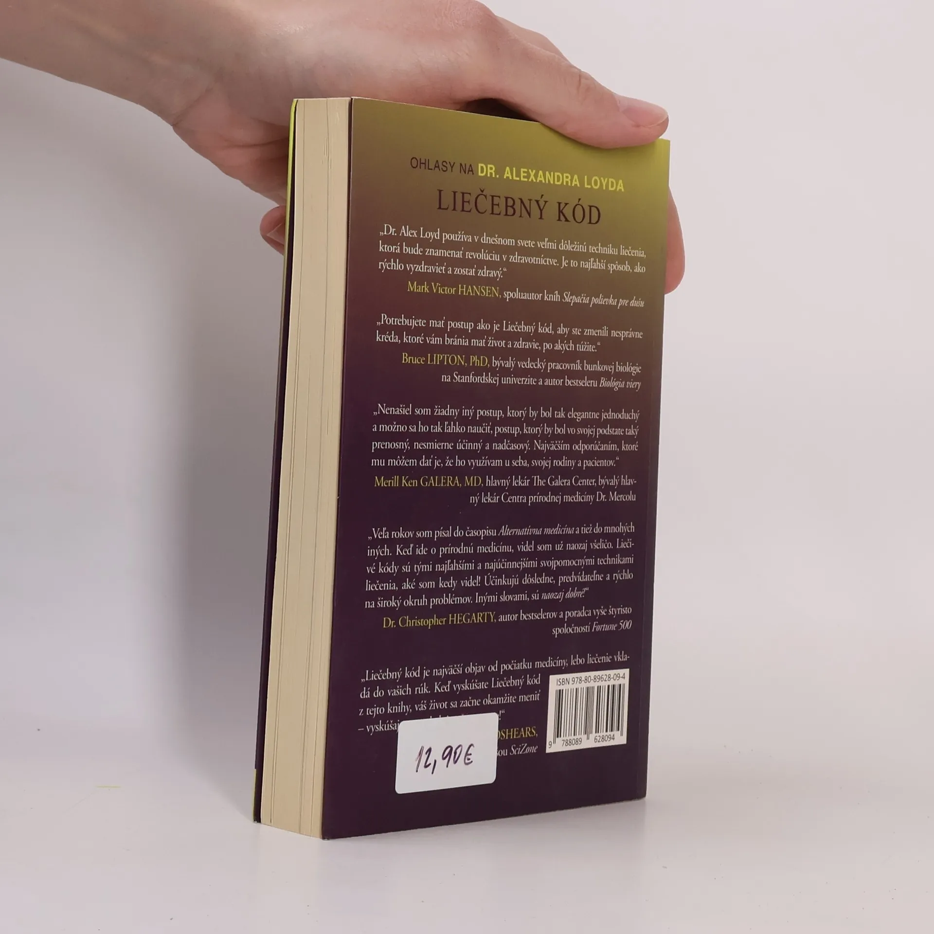 V roku 2001 prišiel Dr. Alexander Loyd na to, ako aktivovať v tele zabudovanú fyzickú funkciu, ktorá odstraňuje zdroj deväťdesiatich piatich percent všetkých ochorení. Nervovo-imunitný systém môže potom vykonávať svoju hojivú prácu všade tam, kde je v tele niečo v neporiadku. Zistenia Dr. Loyda overili testy a tisícky ľudí z celého sveta, ktorí systém Liečebného kódu používajú na nápravu doslova každého fyzického, emocionálneho problému, problému so vzťahmi, ako aj na realizáciu postupu v zamestnaní. Pri testovaní tiež zistil, že existuje Univerzálny Liečebný kód, ktorý môže pomôcť pri liečení väčšiny problémov u väčšiny ľudí. V tejto knihe sa ten Univerzálny Liečebný kód naučíte a jeho vykonanie vám zaberie len niekoľko minút.