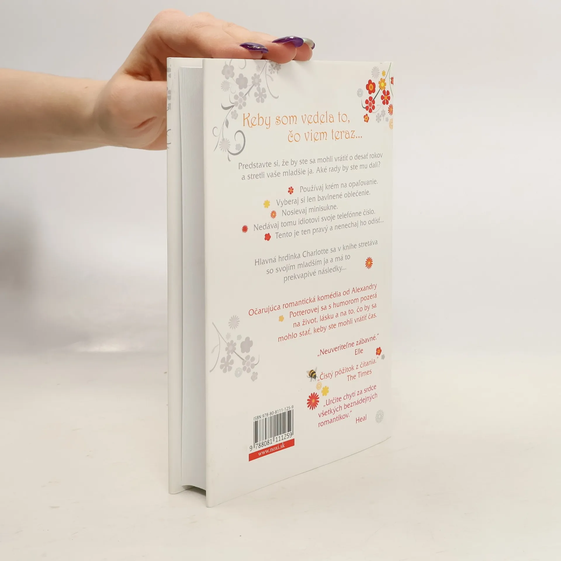 Keby som vedela to, čo viem teraz... Predstavte si, že by ste sa mohli vrátiť o desať rokov späť a stretli vaše mladšie ja. Aké rady by ste mu dali? Používaj krém na opaľovanie, vyberaj si len bavlnené oblečenie, nedávaj tomuto idiotovi svoje telefónne číslo, ale tento je ten pravý a nenechaj ho odísť. Hlavná hrdinka Charlotte sa v knihe stretáva so svojím mladším ja a má to prekvapivé následky ... Charlotte je úspešná v oblasti PR, má vlastnú firmu, kopec peňazí a príťažlivého priateľa. Napriek tomu je neurotická, vystresovaná a pesimistická. Jedného dňa na ceste do práce je uzavretá diaľnica a doprava je odklonená. Počas tejto obchádzky sa Charlotte stretne so svojím o desať rokov mladším ja. Zisťuje, že vtedy bola oveľa bezstarostnejšia a uvoľnenejšia. Staršia Charlotte sa snaží svojej mladšej verzii posunúť rokmi nadobudnuté skúsenosti a zároveň sa ju snaží varovať pred chybami, ktoré počas rokov urobila. Čoskoro sa však aj ona dozvedá niečo podstatné...