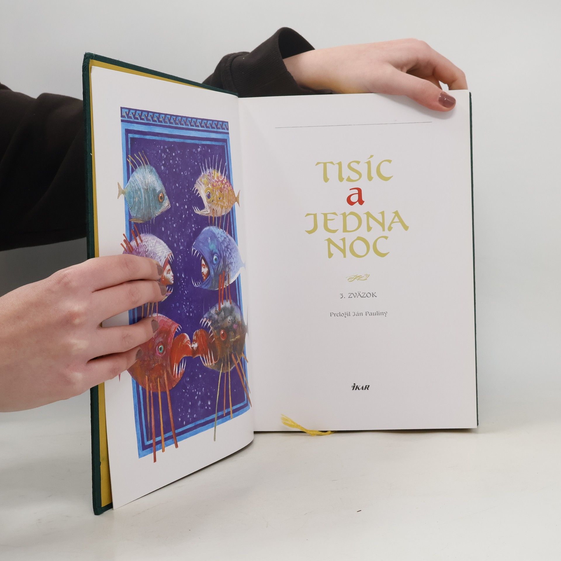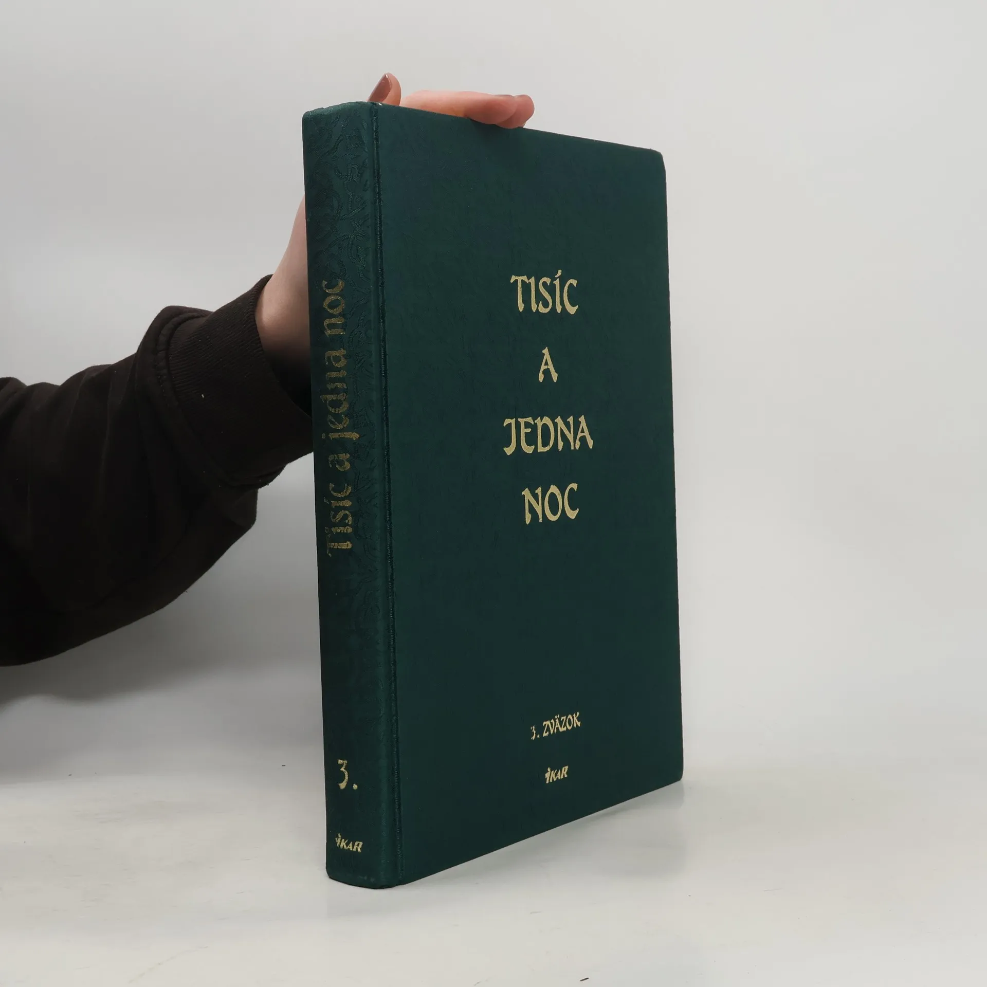 Tisíc a jedna noc je zbierka orientálnych príbehov, ktorá sa stala súčasťou svetovej literatúry a inšpirovala mnohých spisovateľov, hudobníkov a výtvarníkov. Arabský text je známy, no len málo prekladateľom sa podarilo preložiť ho celý. Tretí diel začína rozprávaniami o zvieratách, ktoré sa snažia prežiť v zlých podmienkach a uplatňujú pragmatizmus. Príbeh o ’Alím ibn Bakkárovi a Šamsannaháre zachytáva tragédiu dvoch nešťastných zaľúbencov, ktorých mravná čistota a odhodlanie sú ohromujúce. Kalif Hárún ar-Rašíd zasahuje do ich osudu, čím dodáva príbehu vážny tón. Rozprávanie o Kamarazzamánovi je zložené z viacerých príbehov, kde džinovia zasahujú do osudu mladých ľudí, pričom ich vášnivá láska je ovplyvnená nezodpovednými duchmi. Príbeh ’Alá’addína Abu š-Šámáta začína zázračným vyliečením a jeho láskou k Zubajde, no do deja vstupuje zlodej Ahmad Kamákim Sarrák, čo vedie k jeho úteku a dlhému hľadaniu neviny. Rozprávka o Abú Muhammadovi Lenivcovi sa sústreďuje na chudobného mládenca, ktorého život sa zmení po stretnutí so zázračným opičiakom. V treťom diele sú aj anekdotické príbehy a zábavné rozprávanie o čističovi na bitúnku, ktorého príbeh prekvapí čitateľa. Ilustrátorom je Peter Pollág.