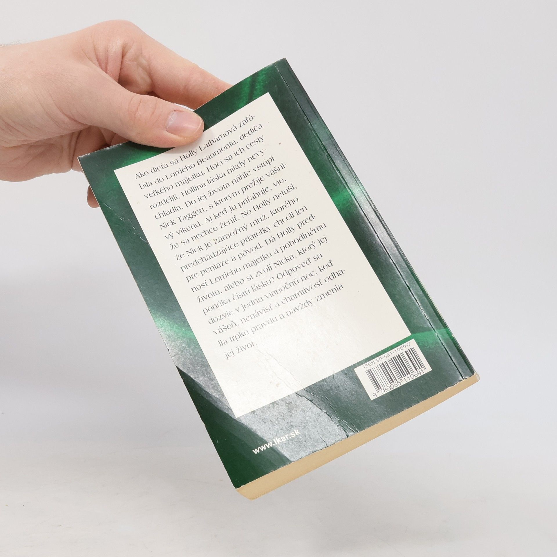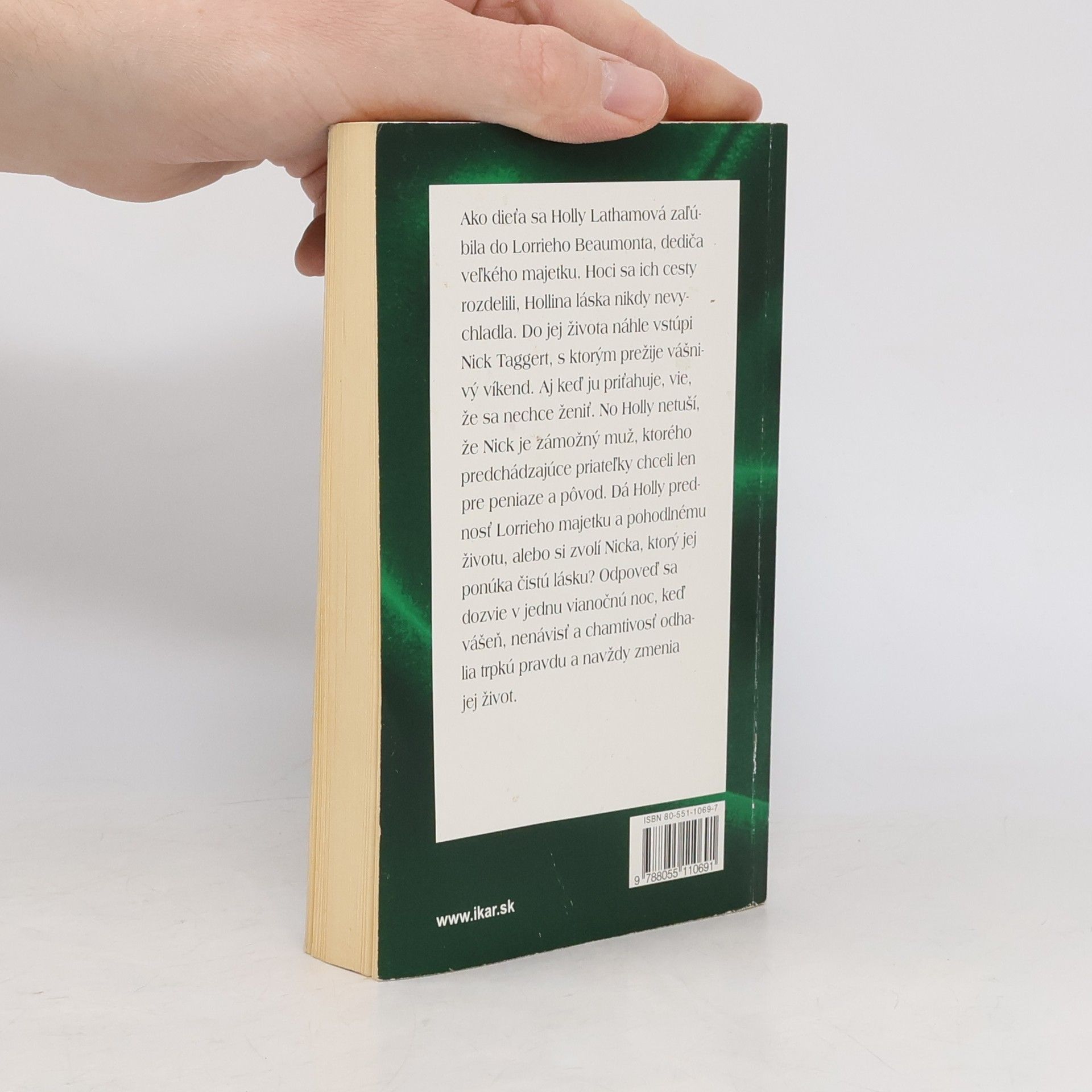 Keď mala Holly Lathamová trinásť rokov, zaľúbila sa do Lorrieho Beaumonta, dediča veľkého majetku. Na istý čas sa ich cesty rozdelili, no Hollina láska nikdy celkom nevychladla. Do jej života však náhle vstúpi Nick Taggert, s ktorým prežije nádherný, vášnivý víkend. Aj keď ju priťahuje, vie, že sa nechce ženiť. No Holly netuší, že Nick je zámožný muž, ktorého predchádzajúce priateľky chceli len pre peniaze a pôvod. Dá Holly prednosť Lorrieho majetku a pohodlnému životu, alebo si zvolí Nicka, ktorý jej ponúka čistú lásku? Odpoveď sa dozvie v jednu vianočnú noc, keď vášeň, nenávisť a chamtivosť odhalia trpkú pravdu a navždy zmenia jej život.