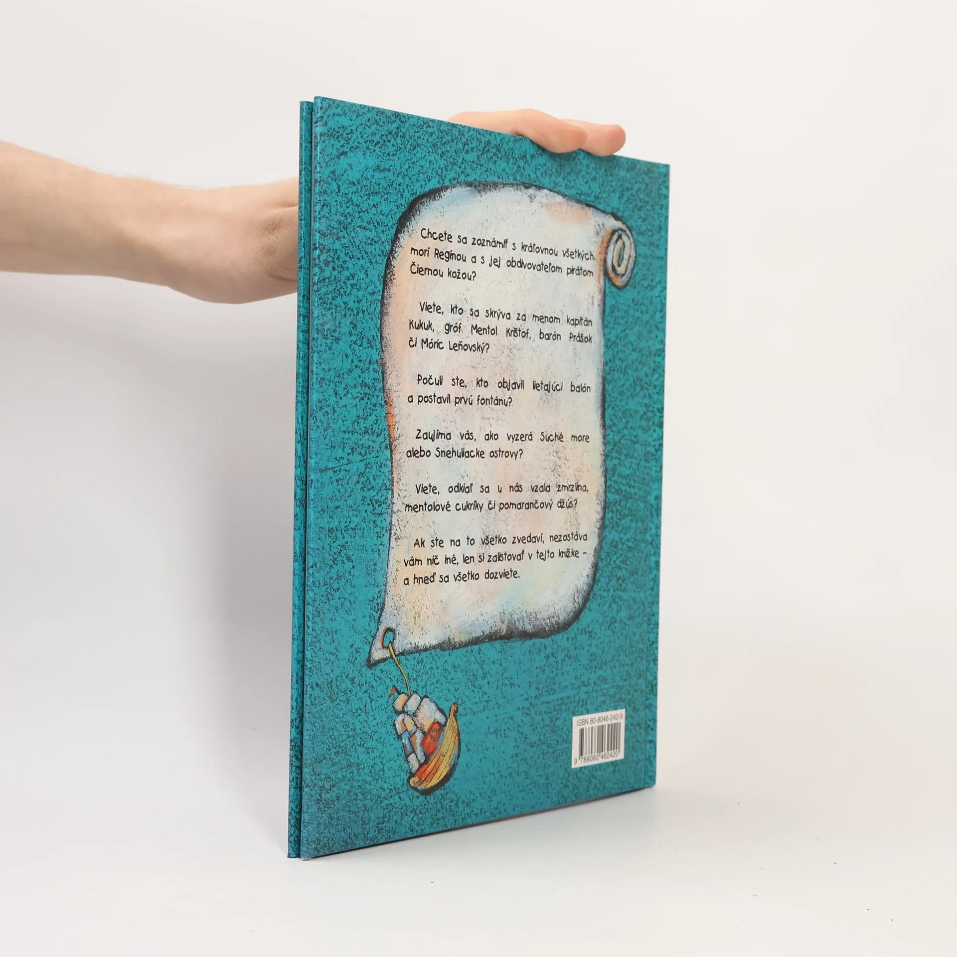 Chcete sa zoznámiť s kráľovnou všetkých morí Regínou a s jej obdivovateľom pirátom Čiernou kožou? Viete, kto sa skrýva za menom kapitán Kukuk, gróf Mentol Krištof, barón Prášok či Móric Leňovský? Počuli ste, kto objavil lietajúci balón a postavil prvú fontánu? Zaujíma vás, ako vyzerá Suché more alebo Snehuliacke ostrovy? Viete, odkiaľ sa u nás vzala zmrzlina, mentolové cukríky či pomarančový džús? Ak ste na to všetko zvedaví, nezostáva vám nič iné, len si zalistovať v tejto knižke - a hneď sa všetko dozviete.