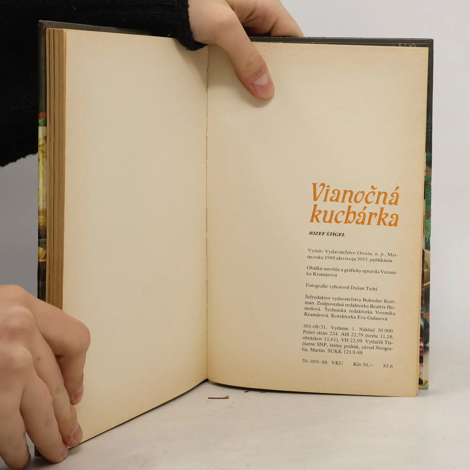 Recepty na jedlá podávané na štedrovečernú hostinu. Obsah: Vznik a vývoj štedrovečerných jedál, Aperitívy, Vianočné oblátky, Polievky, Ryby a prílohy, Kapor, Pstruh, Prílohy, Pochúťkové maslá, Moriak, Vianočné cestoviny, Koláče, Drobné zákusky Nepečené zákusky Torty, Sviatočné dezerty, Nápoje, Káva, Ozdoby na stromček, Domáce cukríky, Národné špeciality z českej, americkej, anglickej, argentínskej, brazílskej, bulharskej, dánskej, fínskej, francúzskej, chorvátskej, maďarskej, nemeckej, poľskej, rakúskej, španielskej, švajčiarskej, švédskej, talianskej kuchyne. Prvé vydanie. Cena knihy v čase vydania: 50 Kčs.