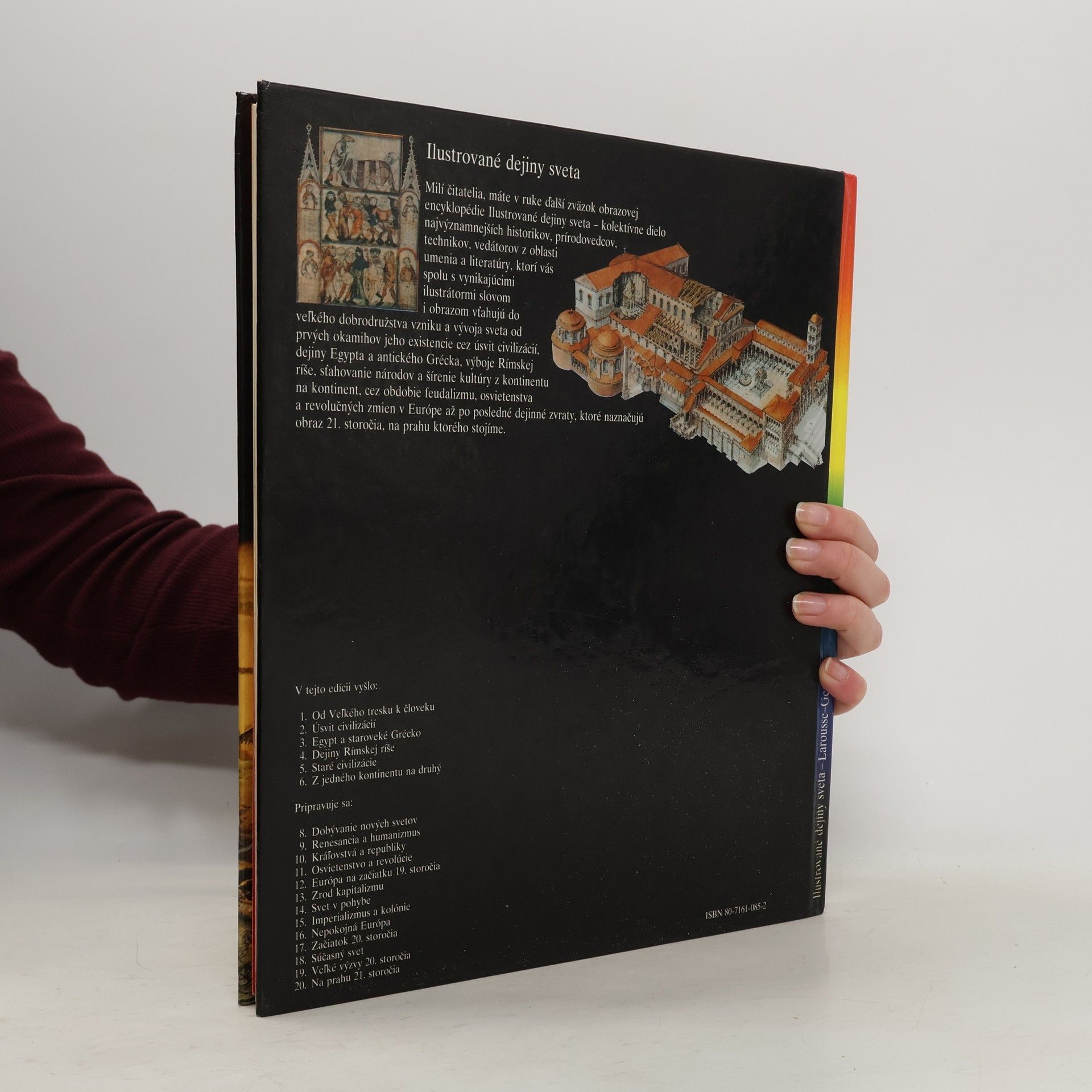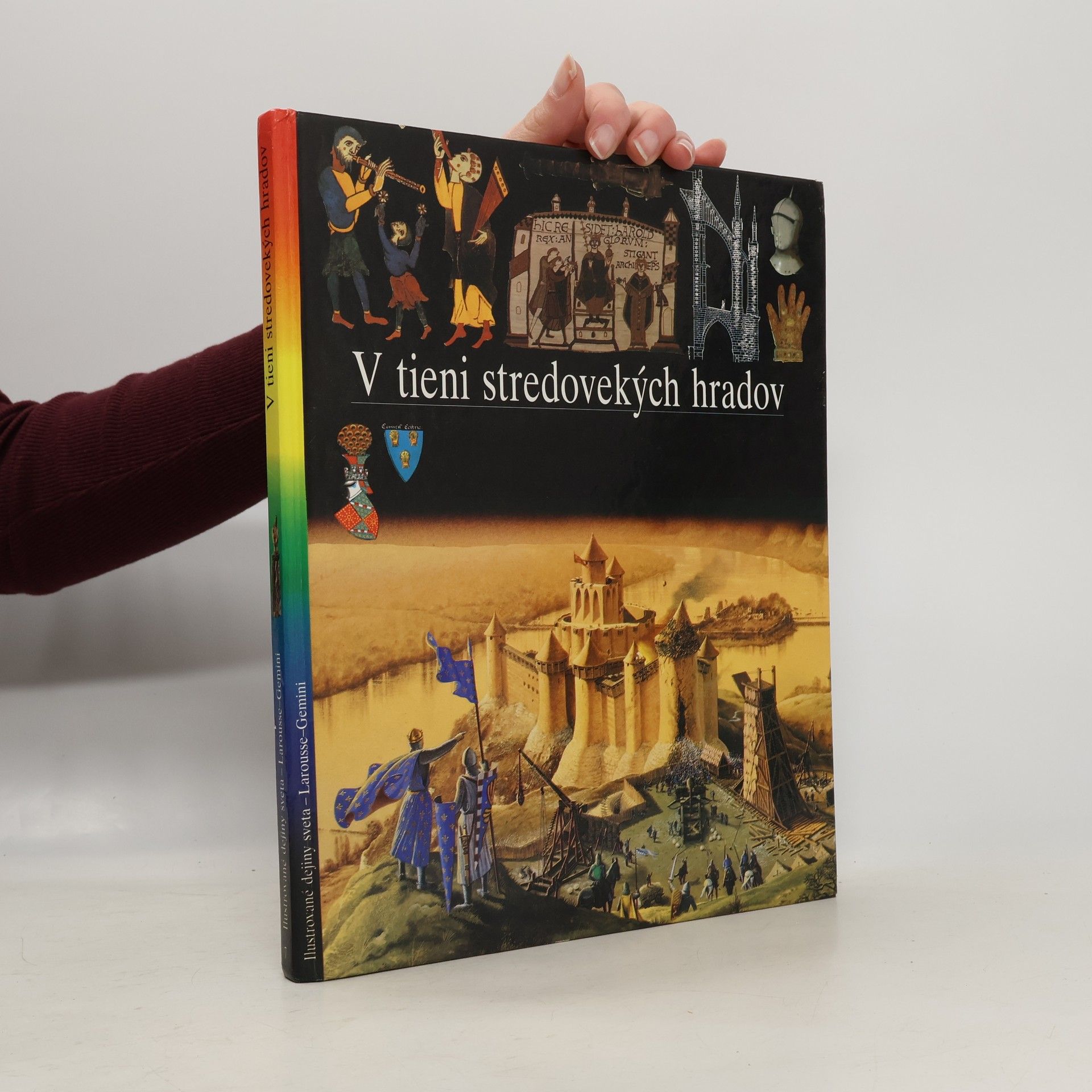 Kapitoly: V čase hradov-Dobytie pevnosti, Dvojitý charakter feudálnej moci, Pomalý pokrok, Vojna, Turnaje, Z poľovačky k stolu, Život na hrade, Európa hradov. Pútnici a križiaci-Sv. Jakub z Compostelly, Trojnásobné posvätné mesto Jeruzalem, Prvá križiacka výprava, Obrana Svätej zeme, Latinské štáty Východu, Akka, Križiacke výpravy Ľudovíta IX. Ľudové križiacke výpravy, Reconquista, Uctievanie relikvií. Vek katedrál-Opátstva a kláštory, Každodenný život v kláštore, Explózia románskeho umenia, Fantastické umenie sochárov, Gotická revolúcia, Katedrála, pýcha mesta, Obrázková kniha kresťanstva, Vývoj gotického štýlu. Klasický stredovek-Svätá ríša, Pápežstvo, Feudálne Francúzsko, Nadvláda Normanov, Feudálne mestá, Politické ideály, Mocní mešťania, Krehká rovnováha. Stredoveké mestá-Život v meste, Zablatené ulice, Bohatstvo miest, Námorný obchod, Sviatky a karneval, Univerzita, Metla moru. Mesto zrodené z vĺn-Zrod veľmoci, Republika v čase kráľov, Svetový trh, Arzenál, Vrchol slávy Benátok, Humanizmus, Včela a medvede, Súmrak benátskych bohov. Prvé vydanie.