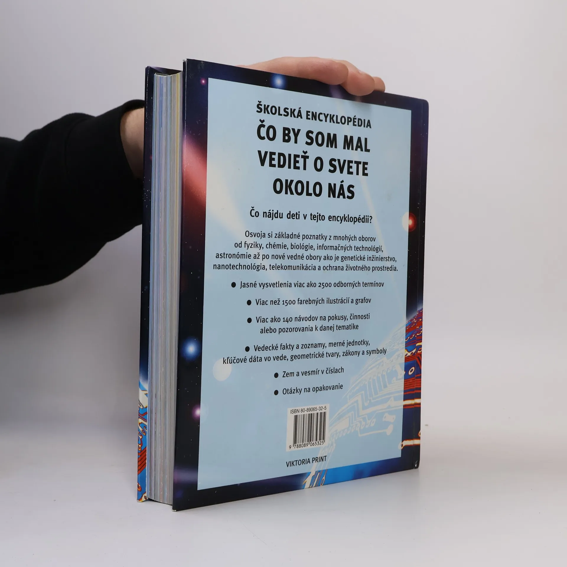 Co najdou děti v této bohatě ilustrované encyklopedii? Osvojí si základní poznatky z mnoha oborů od fyziky, chemie, biologie, informačních technologií, astronomie až po nové vědní obory jako je genetické inženýrství, nanotechnologie, telekomunikace a ochrana životního prostředí. - Jasná vysvětlení více než 2500 odborných termínů - Více než 1500 barevných ilustrací a grafů - Více než 140 návodů na pokusy, činnosti nebo pozorování k danému tématu - Vědecká fakta a seznamy, měrné jednotky, klíčová data ve vědě, geometrické tvary, zákony a symboly - Země a vesmír v číslech - Otázky k opakování