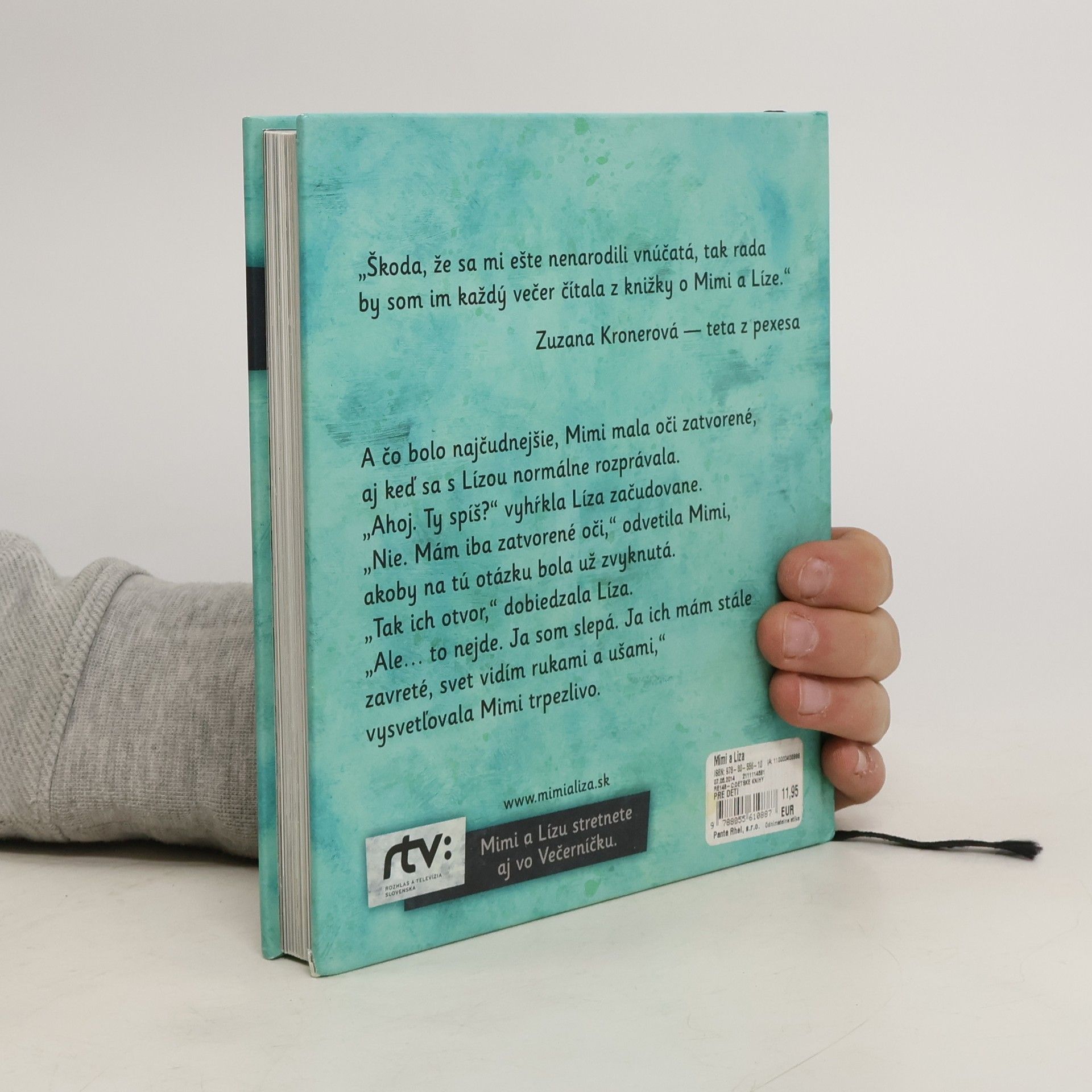 „V mojom meste sú všelijaké domy. Tehlové, kamenné, betónové. Niektoré sú hladké, iné majú zasa hrboľaté steny. Sú vysoké. Viem to, pretože vtáčiky, čo čvirikajú na strechách, počujem dosť slabo.“ Takto hovorí Mimi, ktorá žije vo svete za zavretými očami. No jej svet vôbec nie je nudný a čiernobiely. Spolu s neposednou Lízou spoznávajú susedov a prežívajú dobrodružstvá, kde zrak zrazu nie je taký dôležitý.