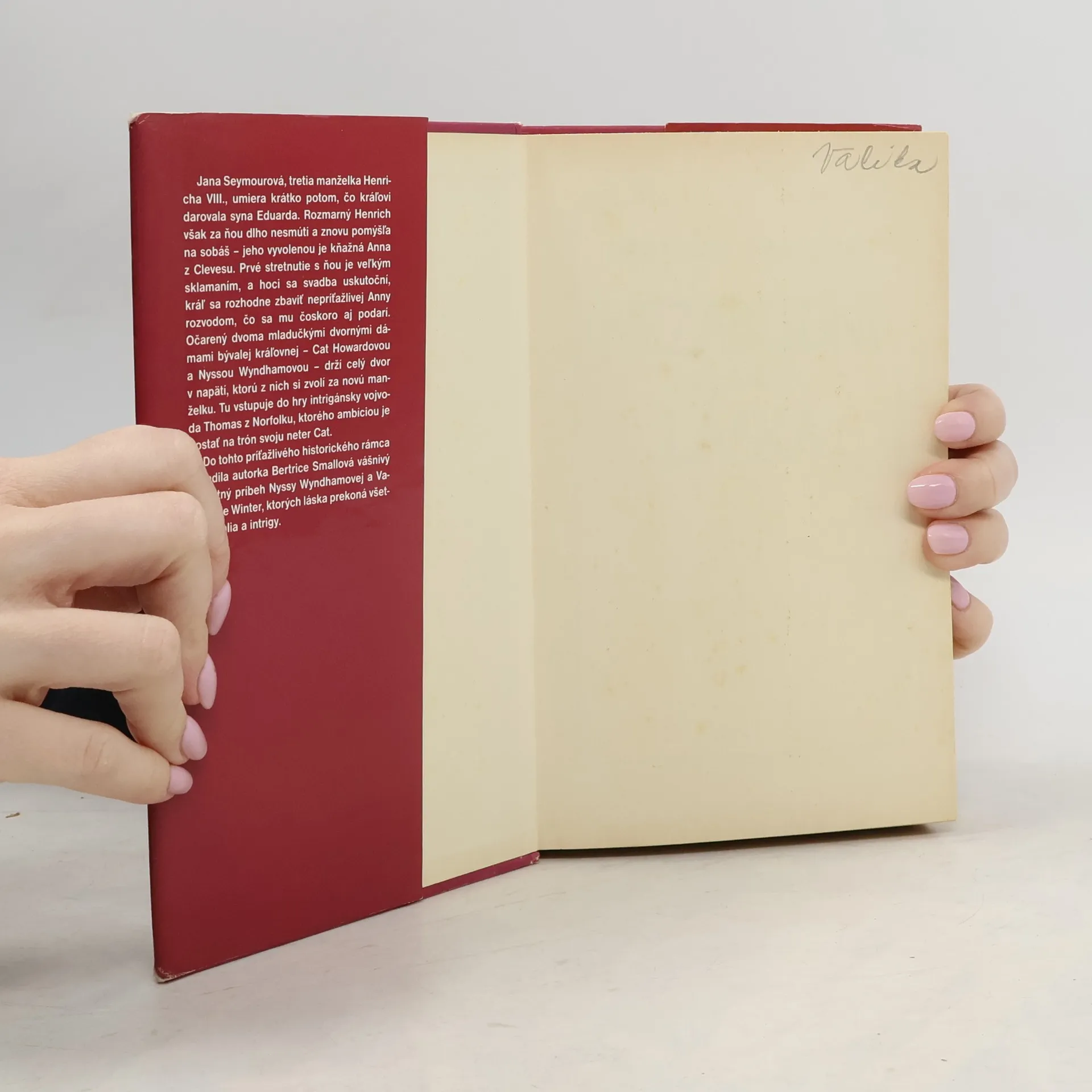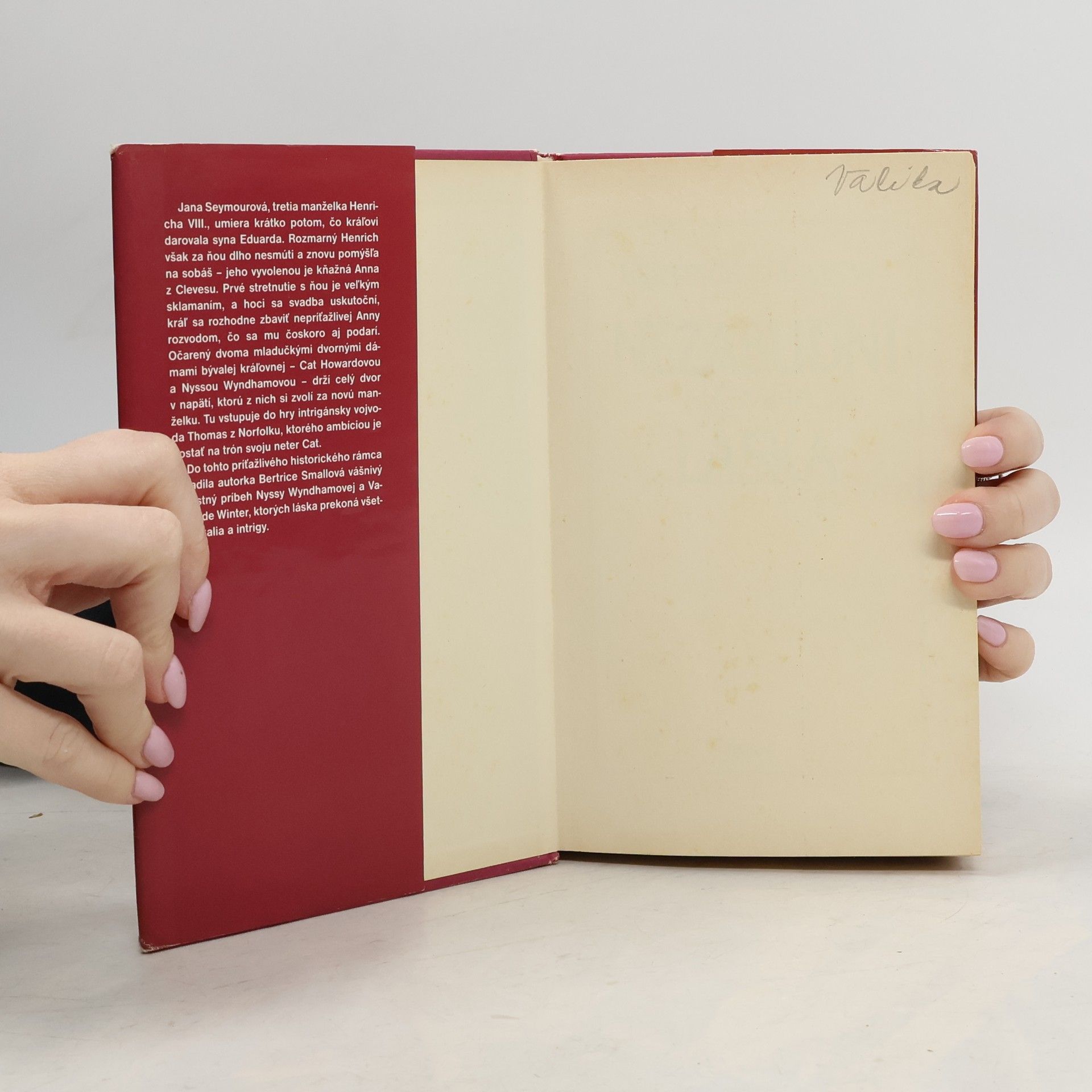 Jana Seymourová, tretia manželka Henricha VIII., umiera krátko po tom, čo kráľovi darovala syna Eduarda. Rozmarný Henrich však za ňou dlho nesmúti a znovu pomýšľa na sobáš - jeho vyvolenou je kňažná Anna z Clevesu. Prvé stretnutie s ňou je veľkým sklamaním, a hoci sa svadba uskutoční, kráľ sa rozhodne zbaviť nepríťažlivej Anny rozvodom, čo sa mu čoskoro aj podarí. Očarený dvoma mladučkými dvornými dámami bývalej kráľovnej - Cat Howardovou a Nyssou Wyndhamovou - drží celý dvor v napätí, ktorú z nich si zvolí za novú manželku. Tu vstupuje do hry intrigánsky vojvoda Thomas z Norfolku, ktorého ambíciou je dostať na trón svoju neter Cat. Do tohto príťažlivého historického rámca zasadila autorka Beatrice Smallová vášnivý ľúbostný príbeh Nynssy Wyndhamovej a Variana de Winter, ktorých láska prekoná všetky úskalia a intrigy...
