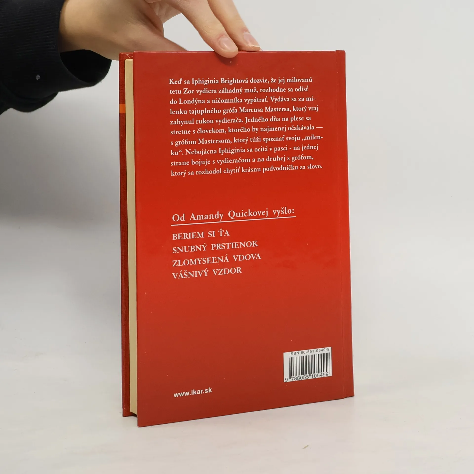 Keď sa Iphiginia Brightová dozvie, že jej milovanú tetu Zoe vydiera záhadný muž, rozhodne sa odísť do Londýna a ničomníka vypátrať. Vydáva sa za milenku tajuplného grófa Marcusa Mastersa, ktorý vraj zahynul rukou vydierača. Jedného dňa na plese sa stretne s človekom, ktorého by najmenej očakávala – s grófom Mastersom, ktorý túži spoznať svoju „milenku“. Nebojácna Iphiginia sa ocitá v pasci – na jednej strane bojuje s vydieračom a na druhej s grófom, ktorý sa rozhodol chytiť krásnu podvodníčku za slovo.