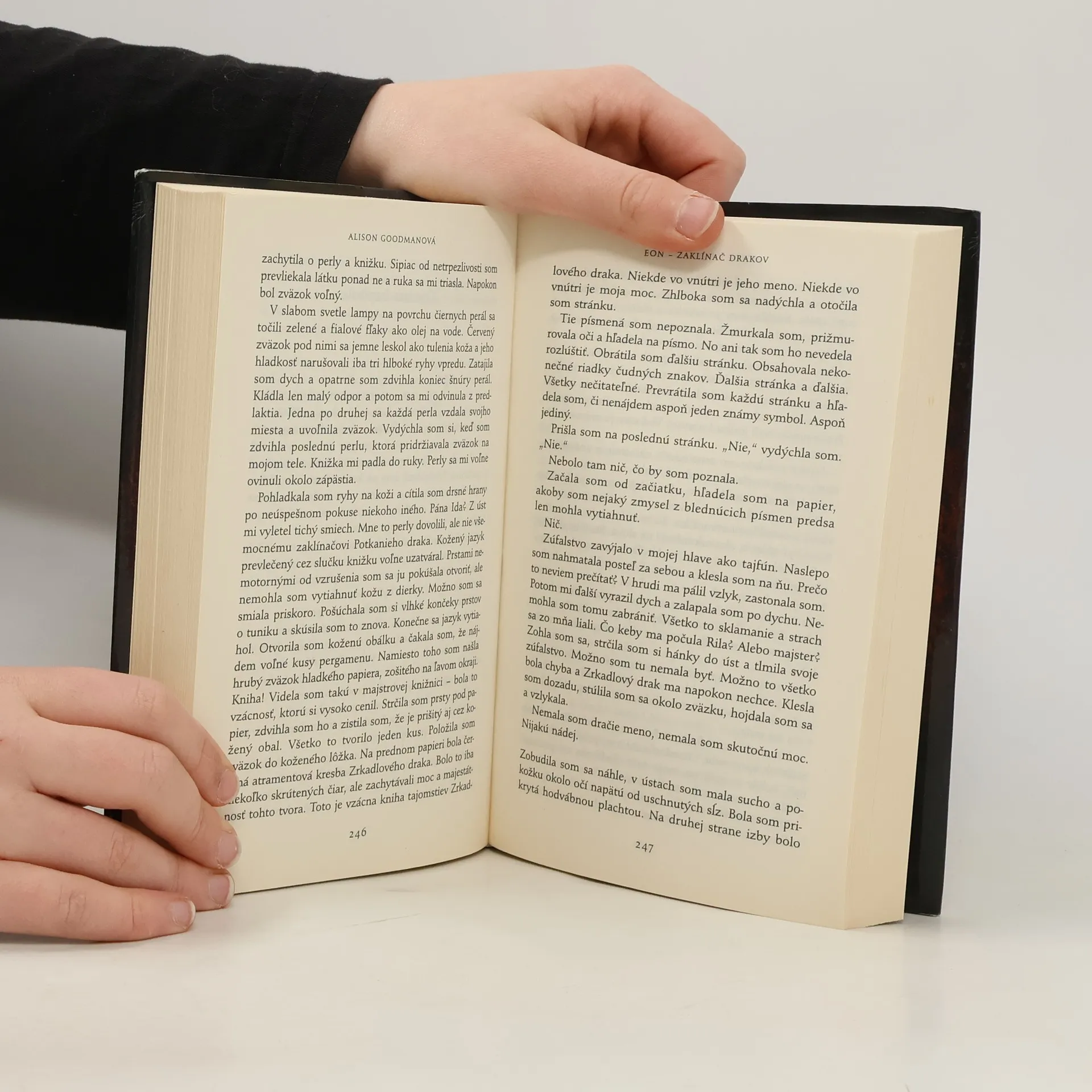 Slovensky. Šermiarske umenie, dračia mágia a hrdina s nebezpečným tajomstvom. Dvanásťročný Eon je už niekoľko rokov študentom. Jeho intenzívna príprava vychádzajúca z východoázijskej astrológie zahrňuje dva druhy umení – umenie meča a magické schopnosti. On a jeho učiteľ dúfajú, že ho vyberú za učňa zaklínača draka – jedného z dvanástich energetických drakov šťastného osudu. Lenže Eon má nebezpečné tajomstvo. V skutočnosti je to Eona, šestnásťročné dievča preoblečené za chlapca, aby získalo šancu stať sa zaklínačom draka. Ženy majú zakázané používať dračiu mágiu. Keby niekto odhalil jej prestrojenie, znamenalo by to jej istú smrť. Keď hrozí, že Eonino tajomstvo vyjde najavo, ona a jej spojenci sa ocitnú v smrteľnom nebezpečenstva a v centre boja o trón. Eona musí nájsť fyzické i duševné sily bojovať proti tým, ktorí ju chcú pripraviť o mágiu... i o život.