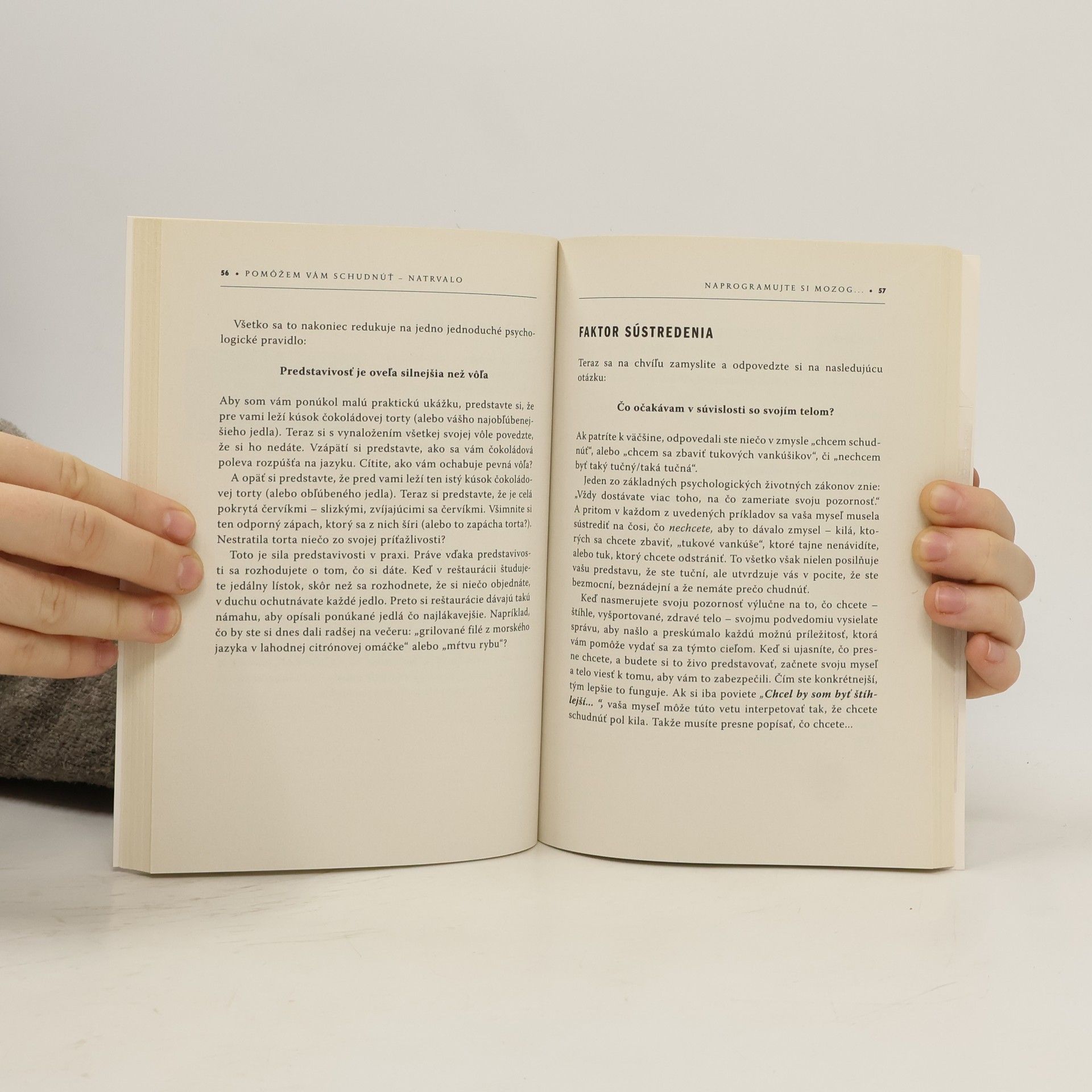 Komplexný systém na chudnutie, s ktorým preprogramujete svoje myšlienky, postoje a predstavy o sebe, o svojom zdraví a stravovaní, takže ľahko získate kontrolu nad svojimi stravovacími návykmi, zhodíte nadbytočné kilá a čo je dôležité, schudnutie bude trvalé.