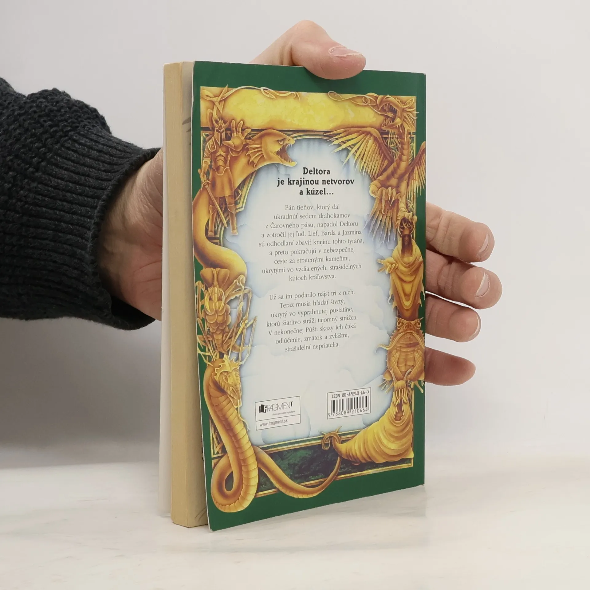 Deltora je krajinou netvorov a kúzel... Pán tieňov, ktorý dal ukradnúť sedem drahokamov z Čarovného pásu, napadol Deltoru a zotročil jej ľud. Lief, Barda a Jazmína sú odhodlaní zbaviť krajinu tohto tyrana, a preto pokračujú v nebezpečnej ceste za stratenými kameňmi, ukrytými vo vzdialených, strašidelných kútoch kráľovstva. Už sa im podarilo nájsť tri z nich. Teraz musia hľadať štvrtý, ukrytý vo vyprahnutej pustatine, ktorú žiarlivo stráži tajomný strážca. V nekonečnej Púšti skazy ich čaká odlúčenie, zmätok a zvláštni, strašidelní nepriatelia.